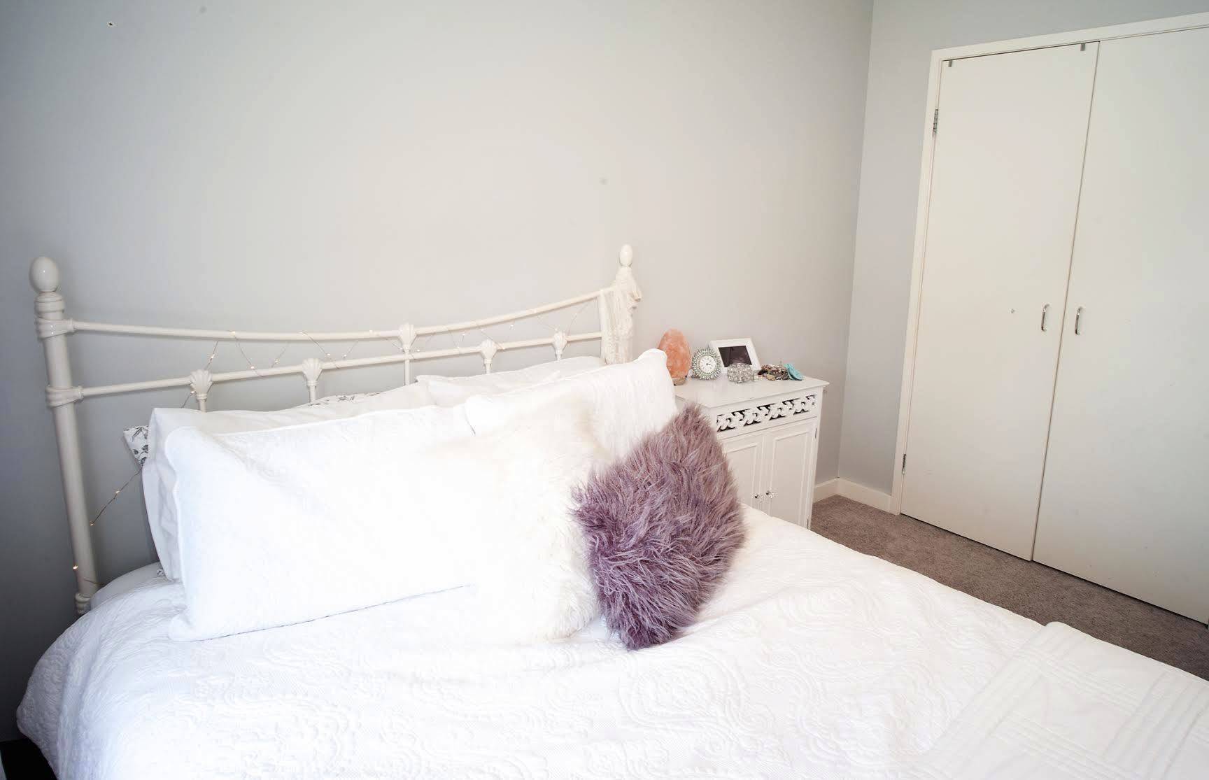 The main bedroom is beautifully styled with a feature wall, plantation shutters, walk through robe and large ensuite.