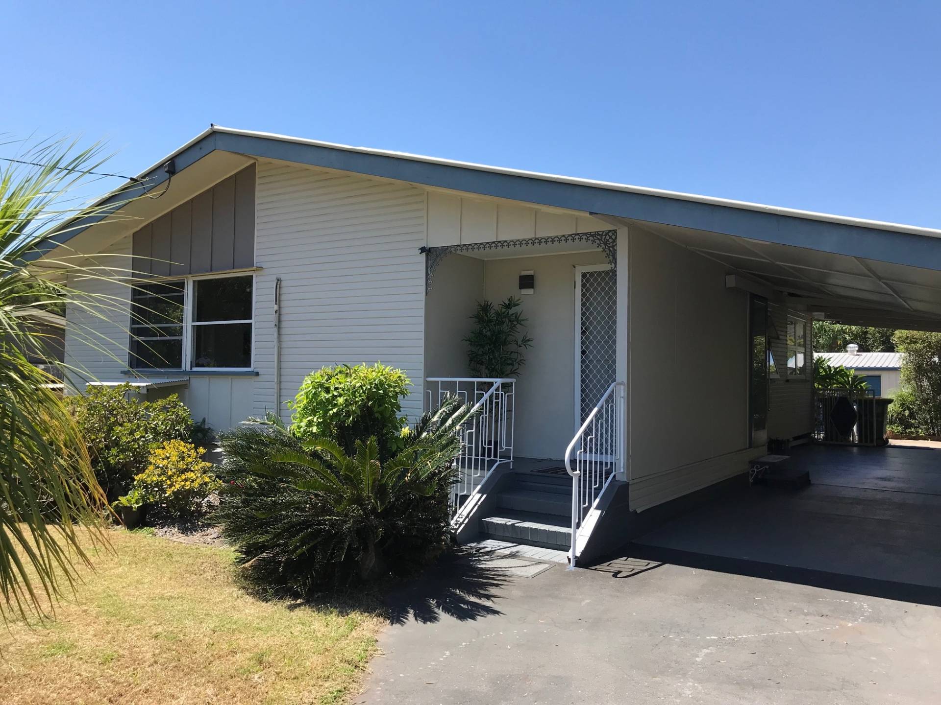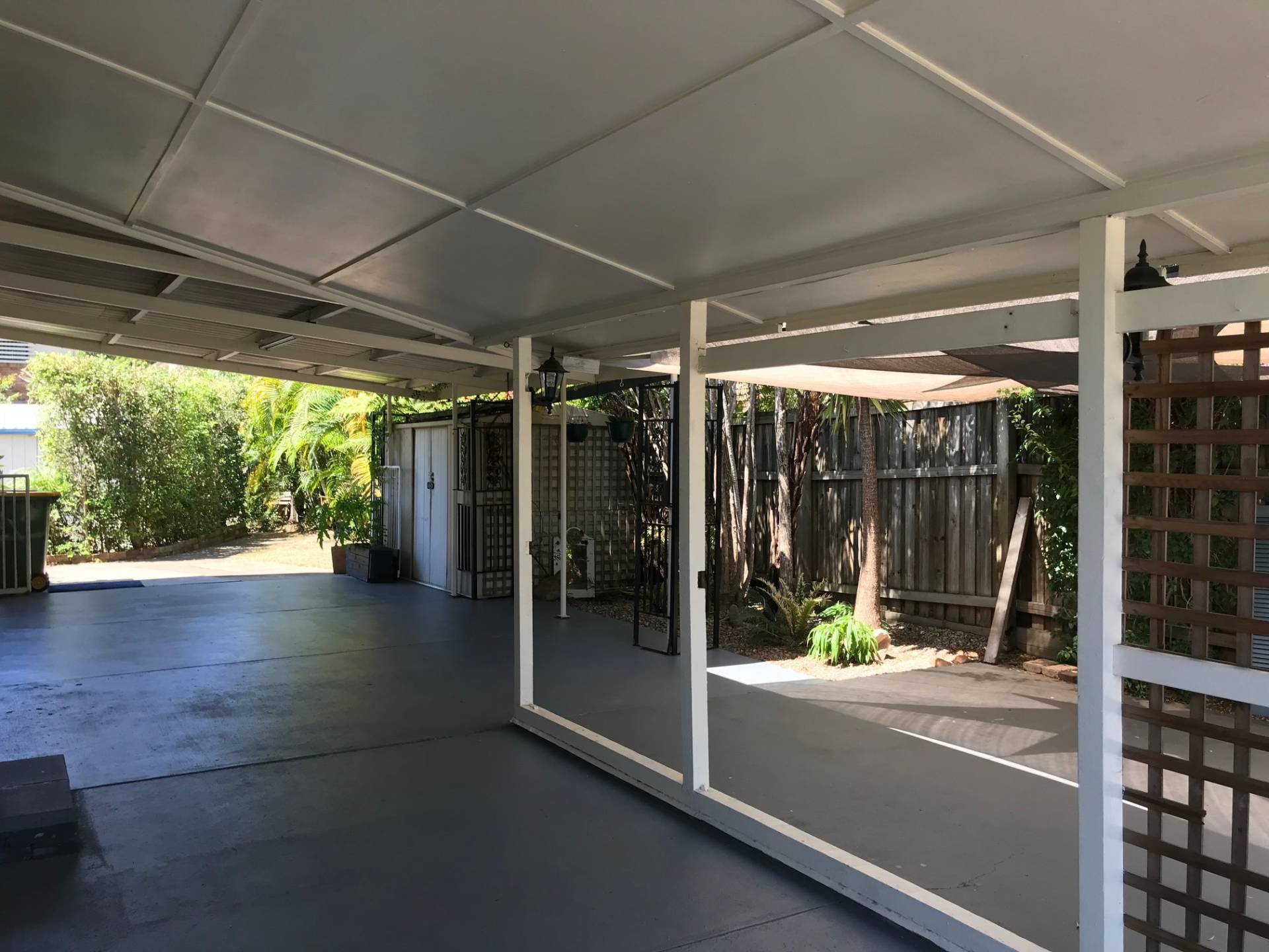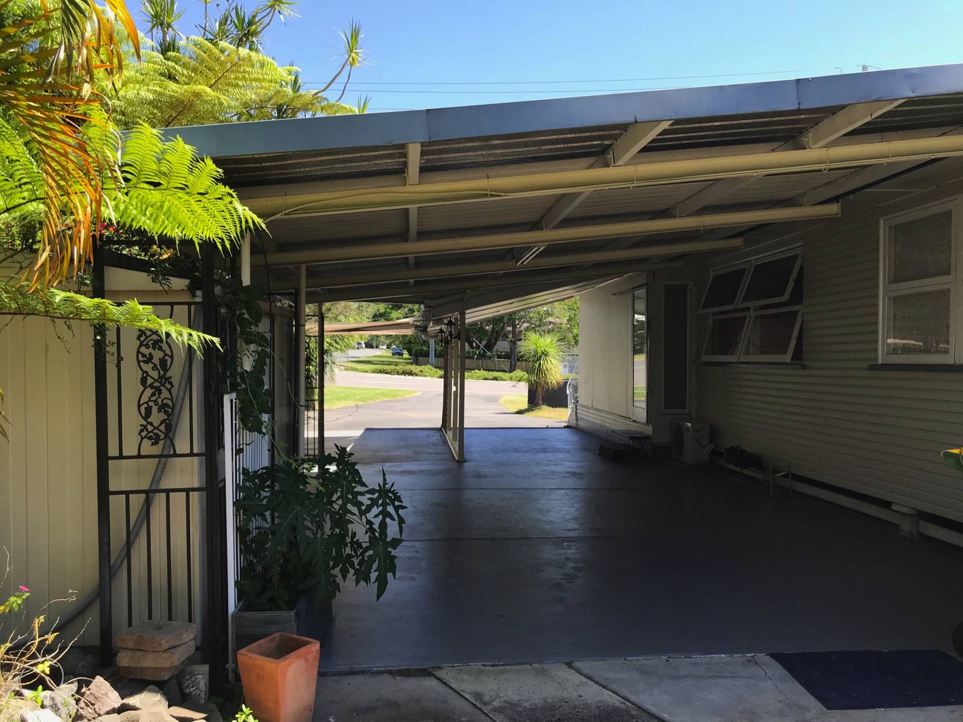 The large undercover area to the right doubles as an entertainment area as well as under cover parking for three cars with dry access to the house.
