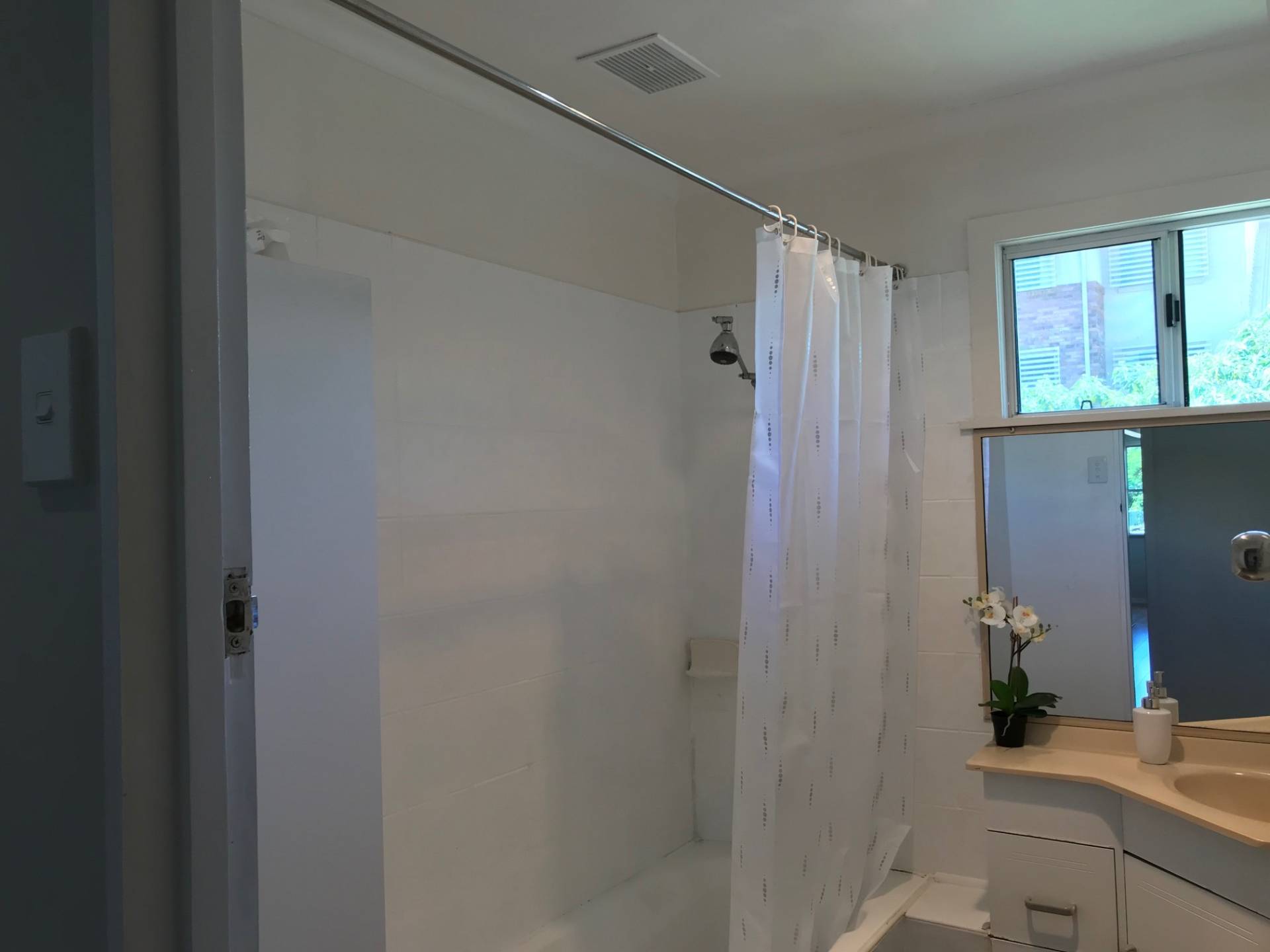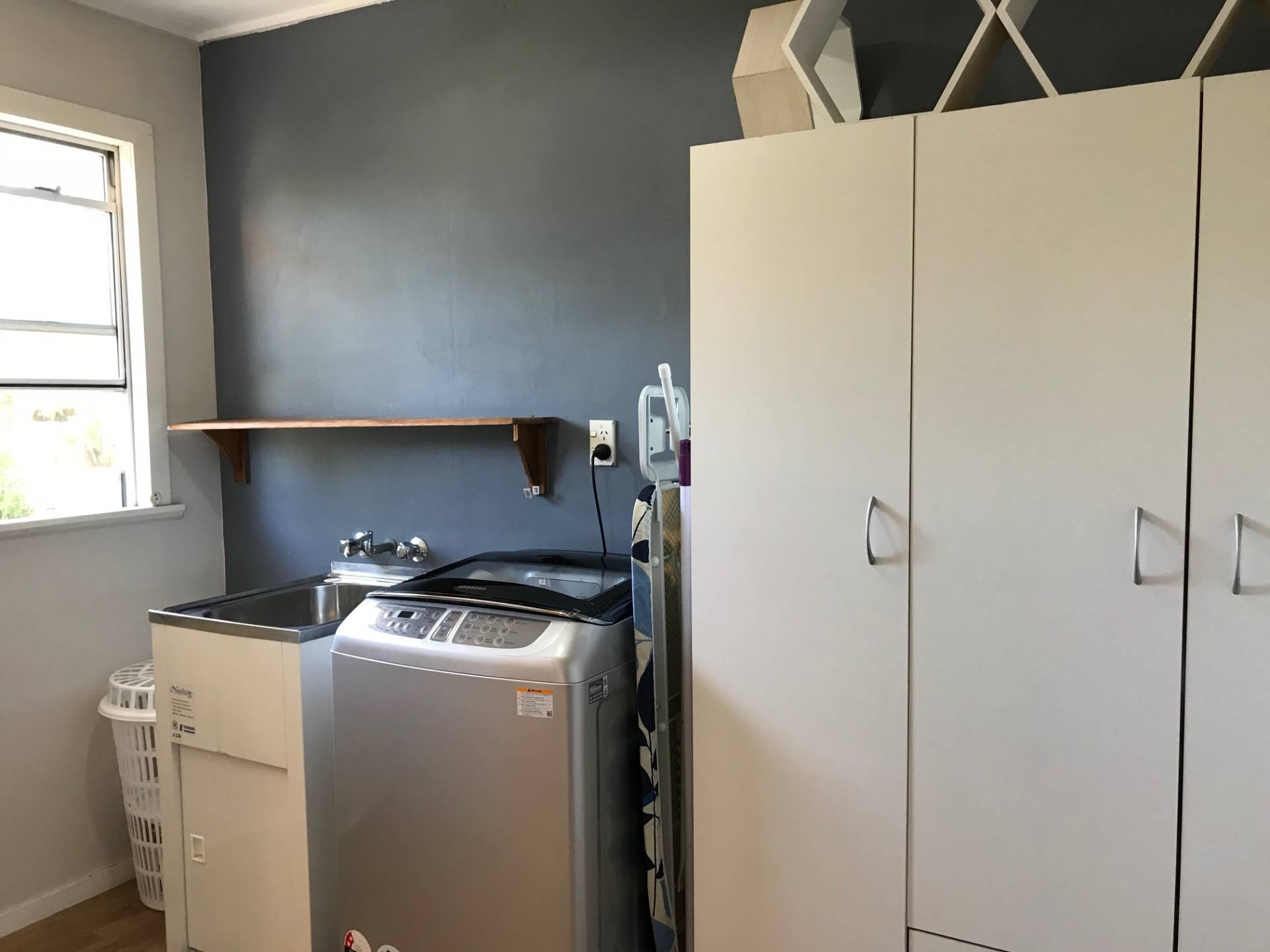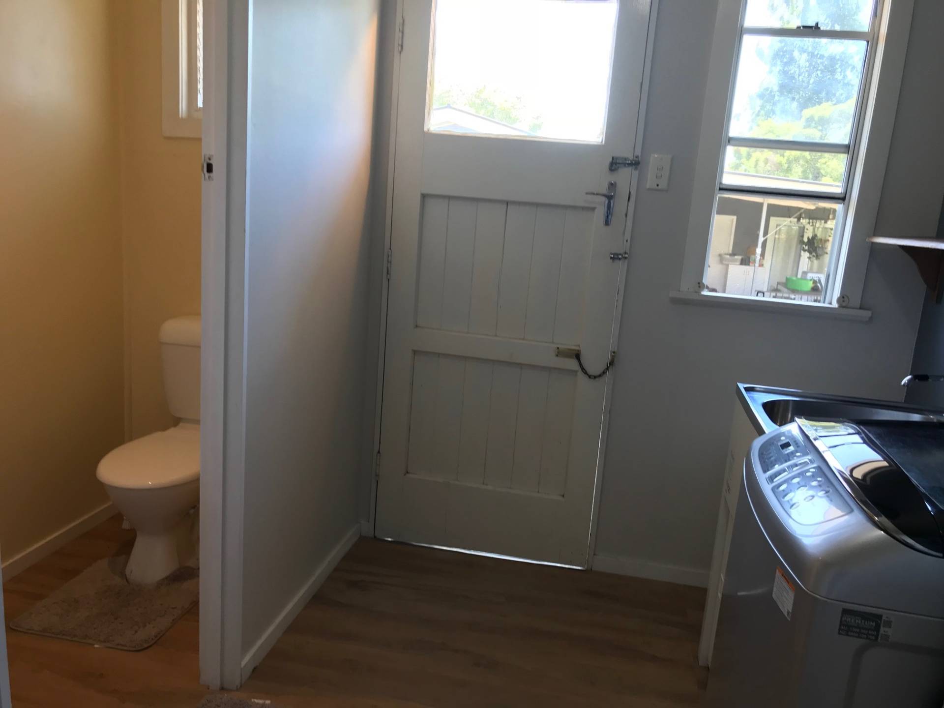 The bathroom is tidy and the laundry is conveniently placed in a separate room behind the kitchen