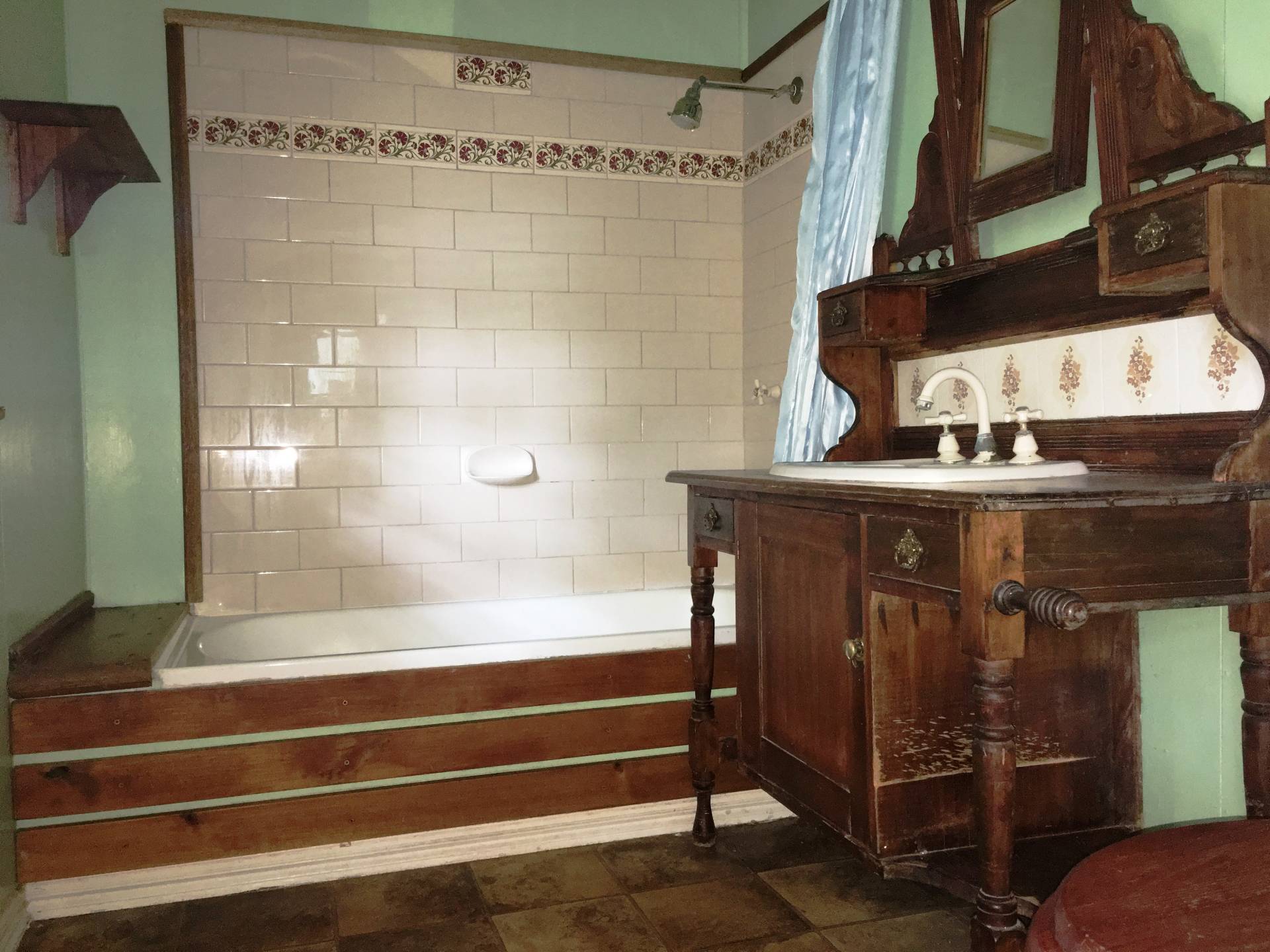 To the front, picket fence and mature hedges frame a wrap-around verandah with broomstick rails, lattice door and decorative fretwork pediment. Inside, wide timber floorboards in the living and three bedrooms accentuate horizontal tongue and grove walls.