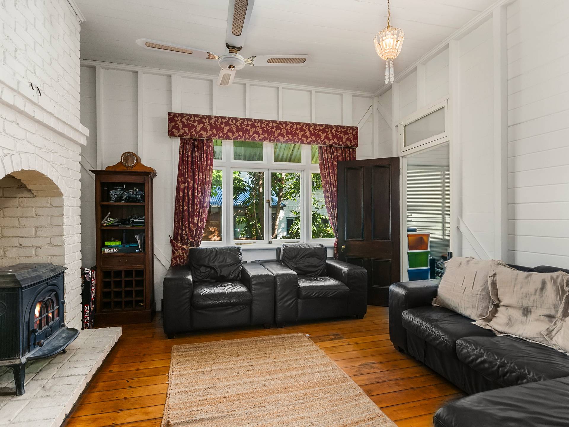 Lead light swing doors open to an impressive, light filled living area with box window with verandah access. Adjoining is a large second living area with fireplace.