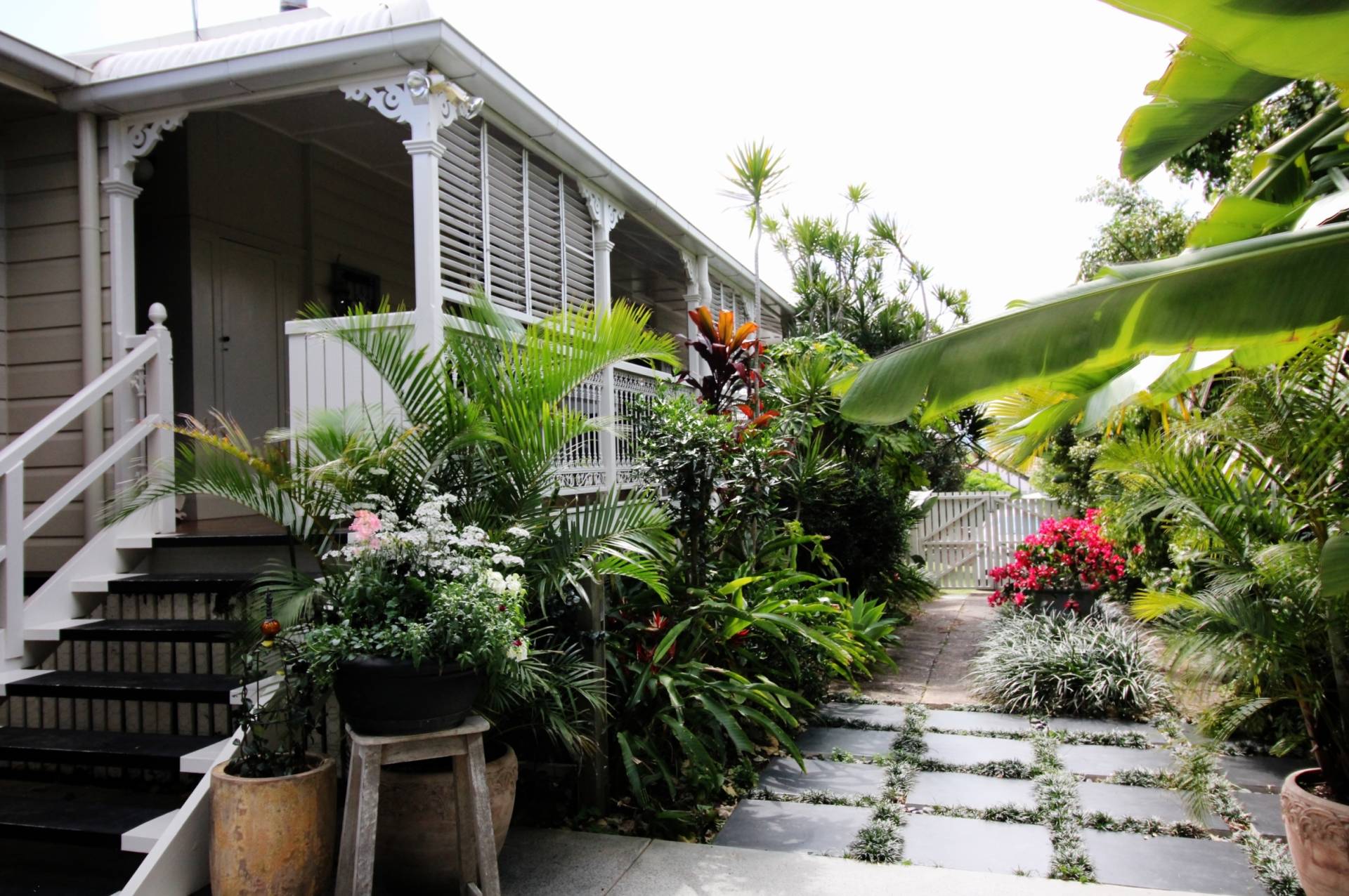 The very roomy main bedroom has a deco style walk in robe, dressing room and ensuite. A further three bedrooms have their own verandah spaces with quirky vintage timber blinds, creating indoor-outdoor private spaces. There is an ideal guest bedroom to the rear with access to the main bathroom, which has a separate double butler’s sink, claw foot bath and adjoins the laundry.