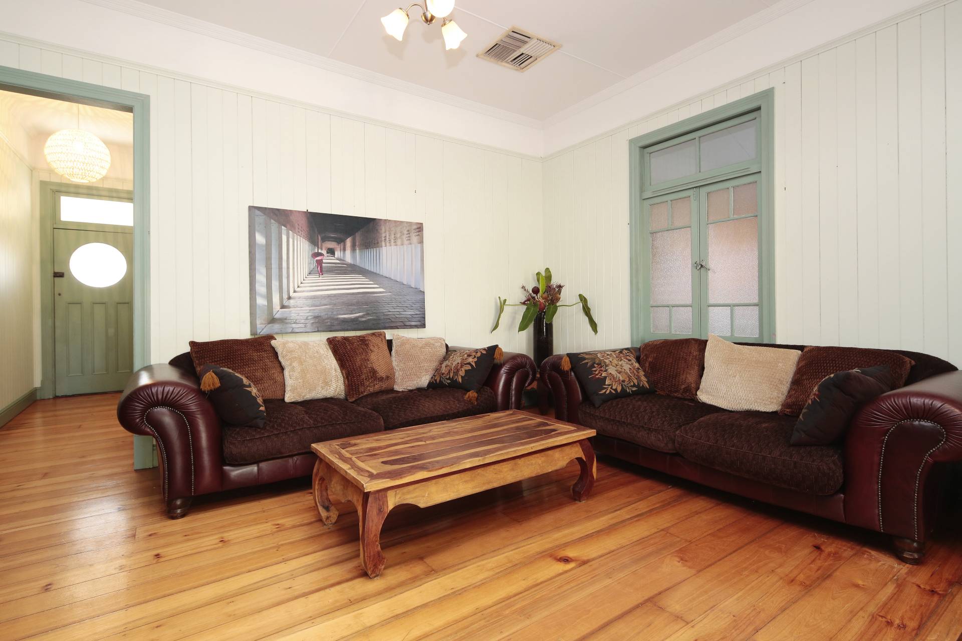 Set back from the street, and shaded by trees, the allure of yesteryear bids you a warm welcome into this expansive home. Central hallway with high ceilings leads you into the residence, with three spacious front bedrooms (2 with built ins), main open plan lounge and dining, massive sleep out, huge federation kitchen all flowing out onto this fabulous covered lifestyle deck. The master wing is separated by a private hallway and houses a study or 5th bedroom with built-ins, master and ensuite.