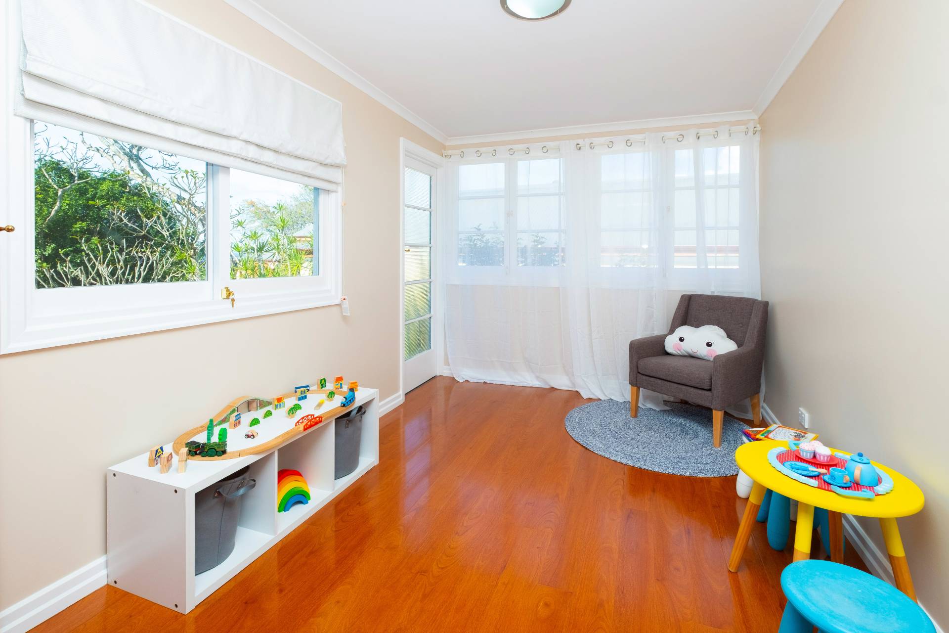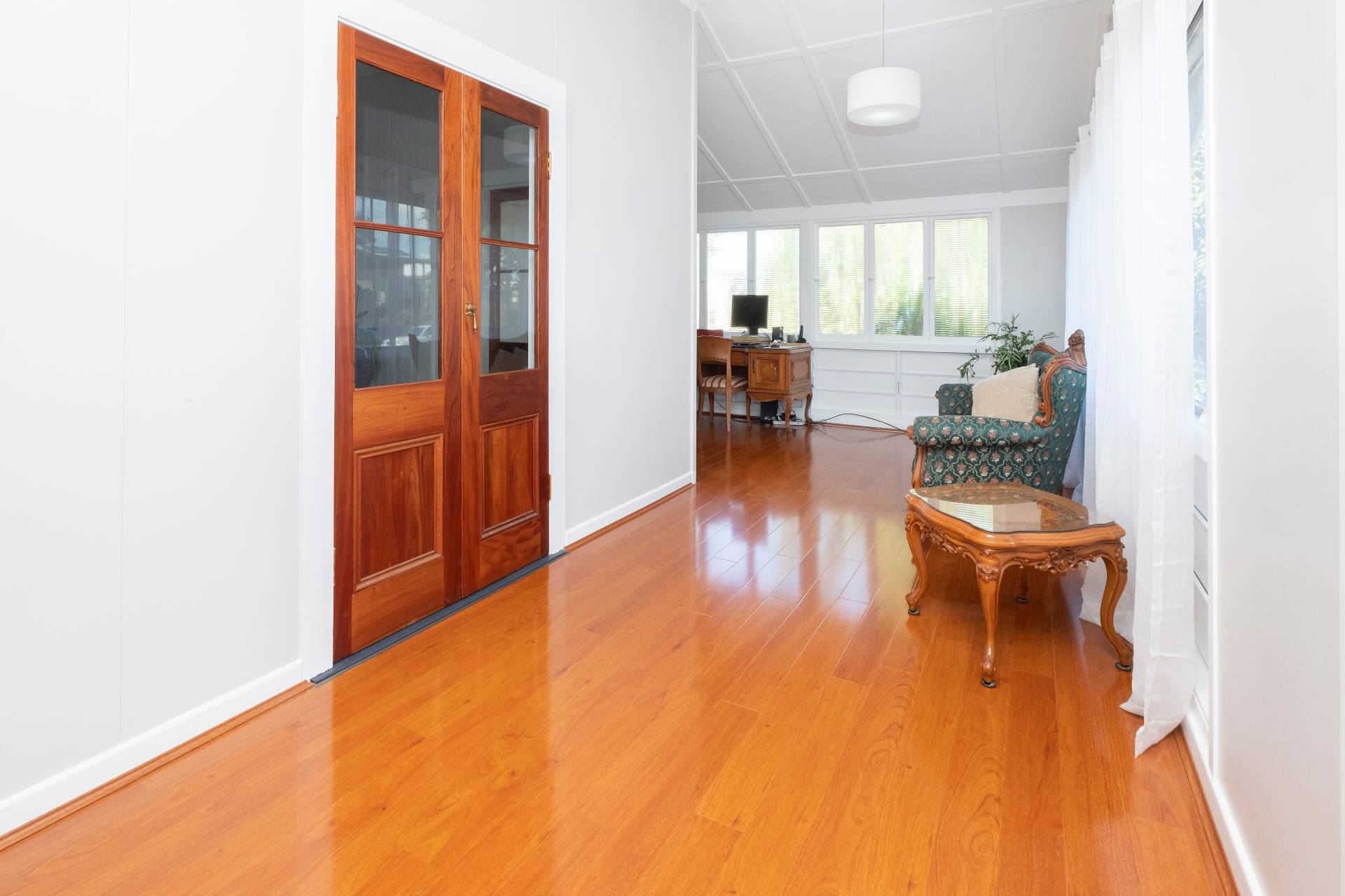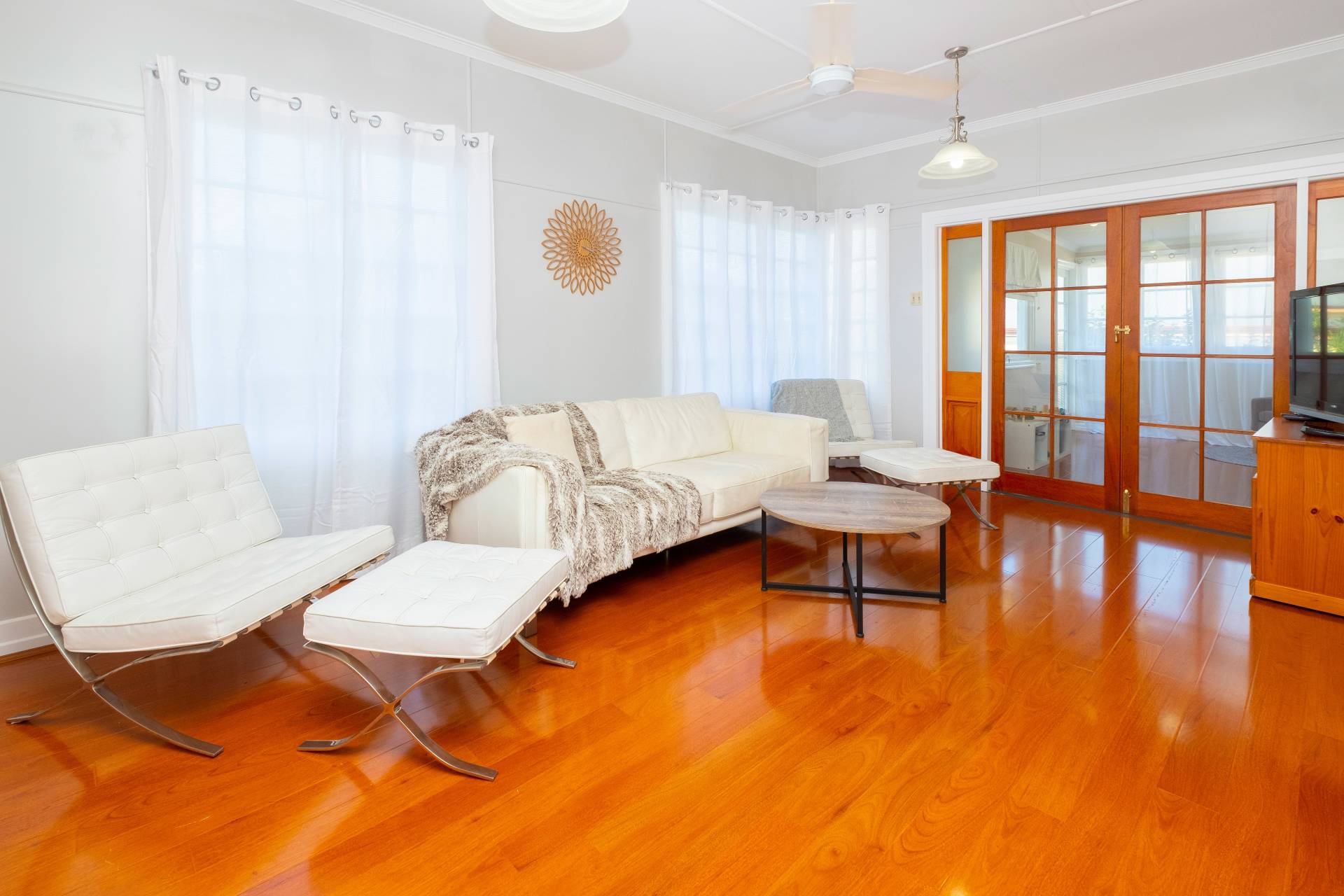 Professionally painted interior and exterior are the perfect finish to an extensive renovation to include new roof including four whirly birds, re-wiring and new bathroom. Floors sanded and coated. Studio installed under. Gleaming wide pine floors throughout the living area compliment the timber French doors and provide an easy care floor for the busy family.