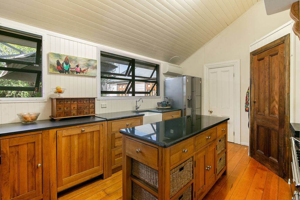 This roomy home in popular Sadliers Crossing has space for everyone. Starting from the private front verandah ideal for morning coffee, you enter through a wide hall where three of the four bedrooms are located. There is a large living area and a separate study adjoining it. All are painted antique white and have high 12ft ceilings and lovely pine flooring. A fourth bedroom or family room is to the rear of the house. Enjoy cooking in the very well appointed galley kitchen which includes a Belling stove and large pantry.