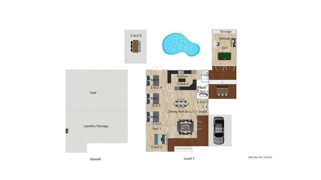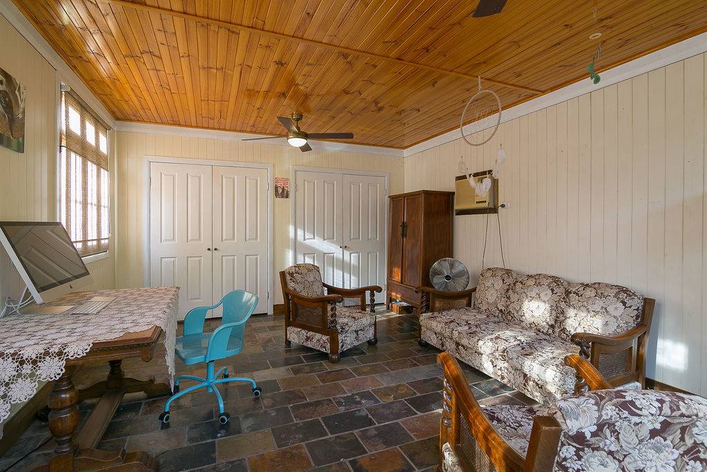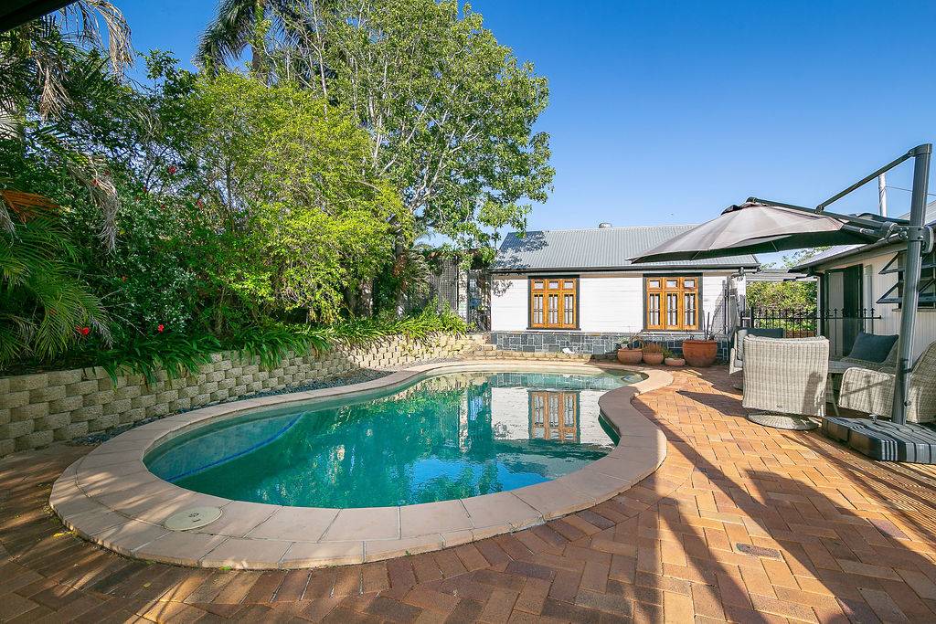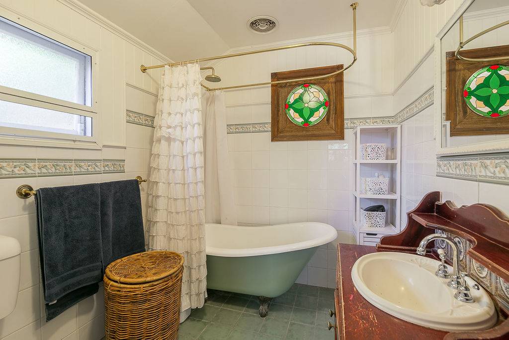 Perfect for the larger family are the two bathrooms – the second shower and toilet at the back to service the pool and main bathroom with claw foot bath. Spend many relaxing hours in the in-ground pool beside the large outside entertainment area. A separate building is fantastic for a home office/business or guest accommodation. There is massive, secure, concreted storage underneath, and it is a good height for workshop or gym. Awesome location – walk to rail, Catholic schools, Boy’s Grammar school and Blair. Upgrades: