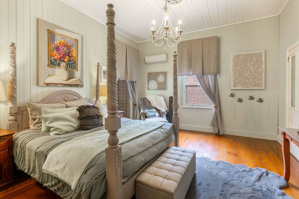Circa 1880’s this rambling colonial provides large bedrooms and devine living space with dramatic black and white main bathroom with claw foot bath separate double shower, vanity and water closet. The master bedroom with verandah access has a walk through robe, make up area and ensuite. The three remaining bedrooms on this level are large, light filled and airy.