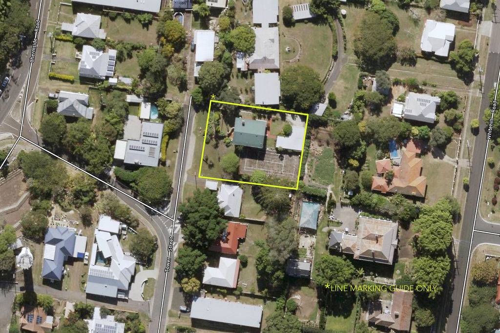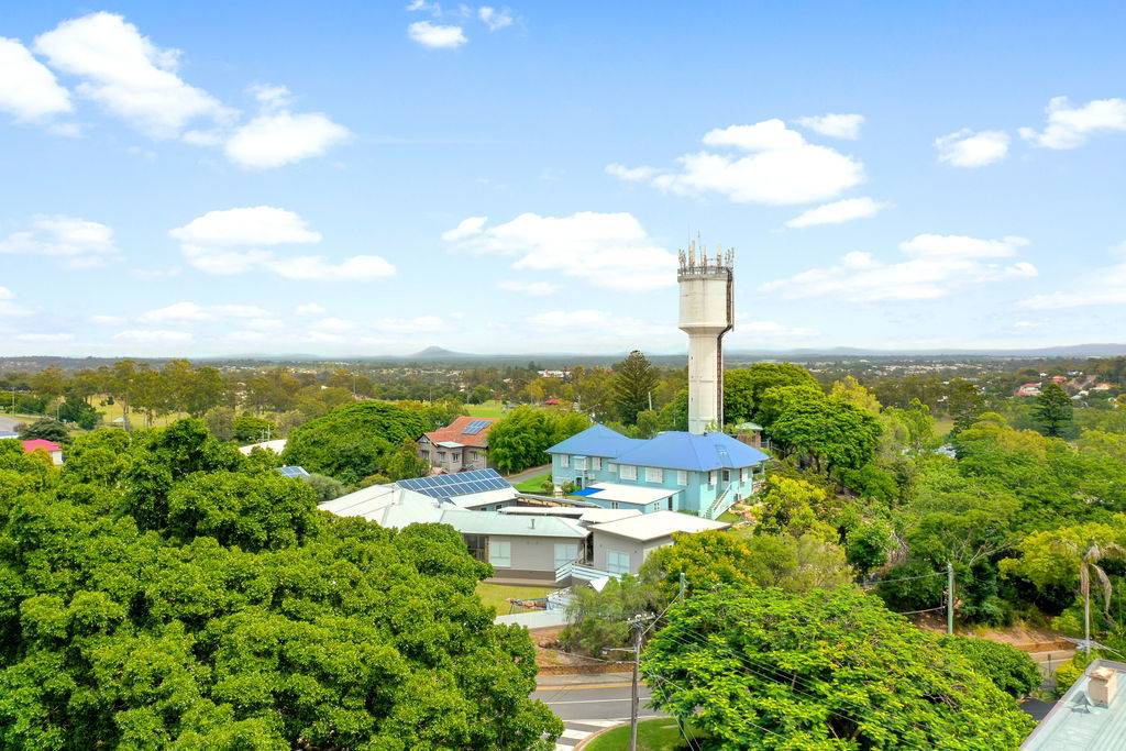 Take advantage of purchasing this unique piece of real estate set on 2 x 826m2 blocks on one of the highest points in Ipswich. Solid and stylish with feature stone walls and fire place this home was designed by Peter Newel Architect. Well ahead of its time the main bedroom has private balcony with view to the Brisbane City skyline and features a large dressing room built-in and two way separate bathroom, shower room and water closet. These facilities also service the further three bedrooms on this level. Abundant storage is provided in the separate archive room and linen cupboard. Extra storage is also along the hall. A striking light-filled staircase connects the two levels. Entertain in style with the formal living area or relax in the games room. A second bathroom and laundry adjoin the roomy downstairs kitchen. A charming lawned courtyard is accessed through large glass doors and enjoys views to the mountains. There is vehicle accommodation for 3 cars and room for a billiards table or large workshop. The tennis court will supply hours of fun for the family. There are no restrictions on removing the structure or building a more contemporary home. Offered only the second time for sale 2 titles in a premium location offering 360° degree views amongst high value real estate. Renovate the existing home or take this golden opportunity to make this your own unique home. Walk to Girls Grammar, rail and Queens Park. Please call for a welcomed inspection.  Rates $650 per quarter and water $230 per quarter depending on usage.