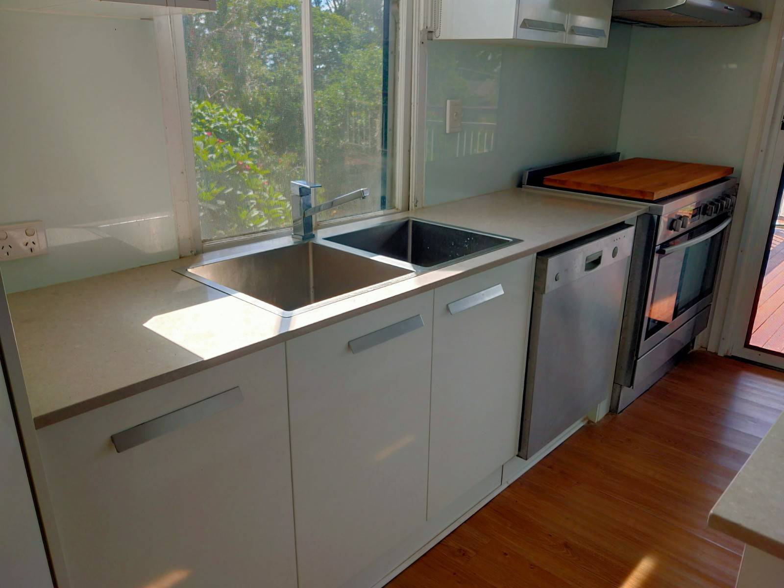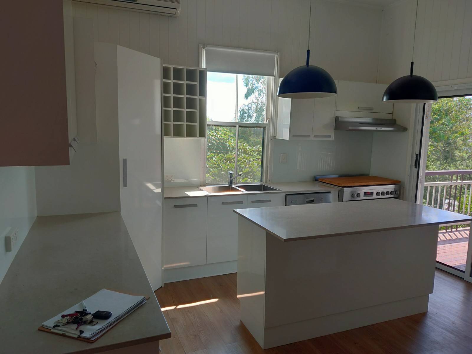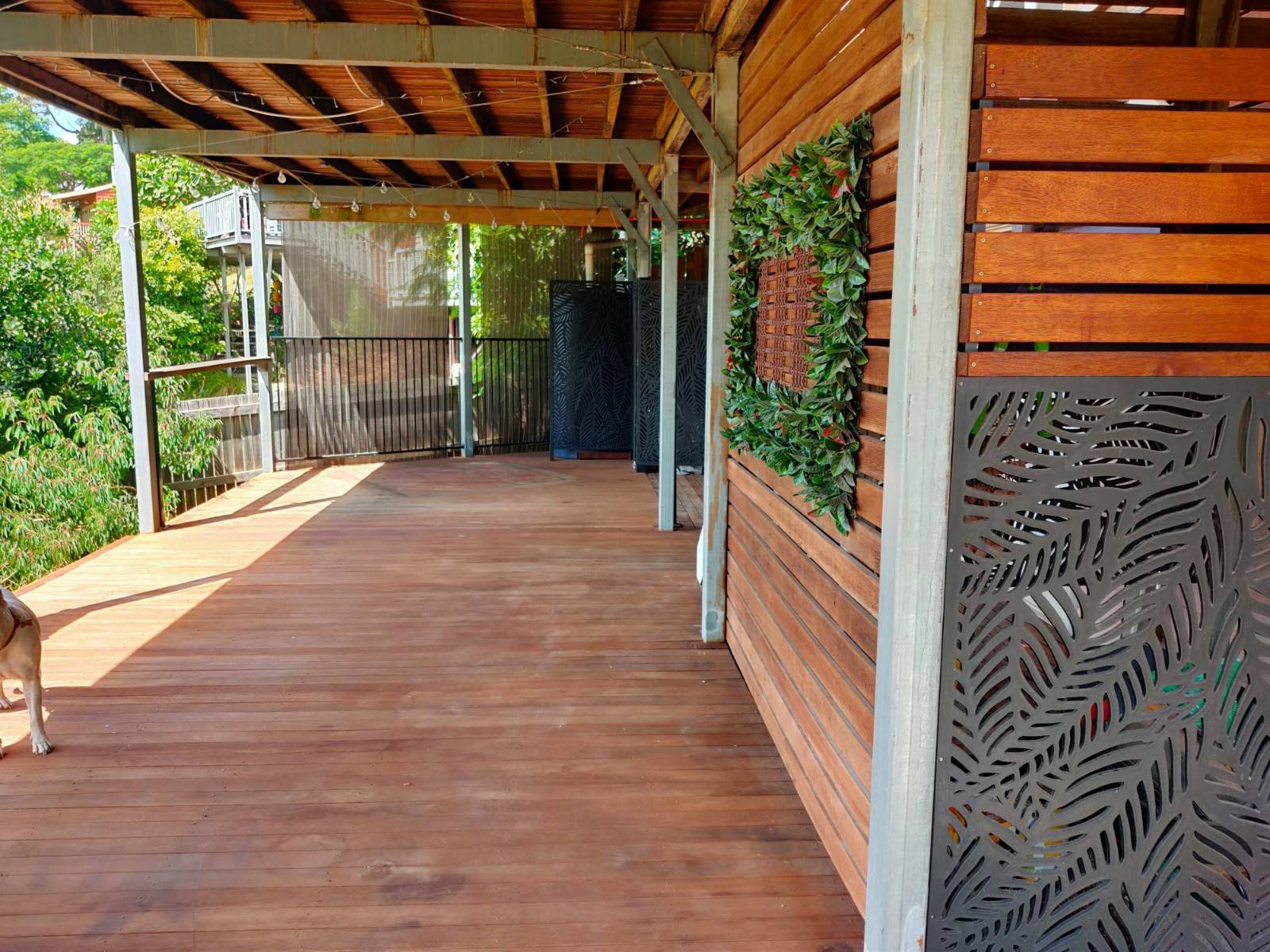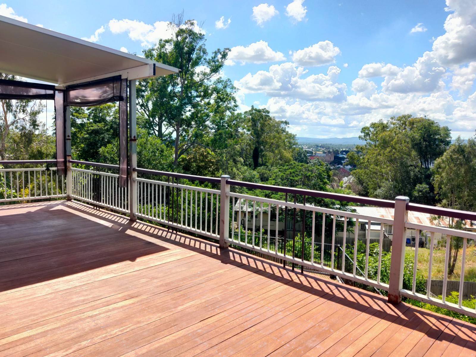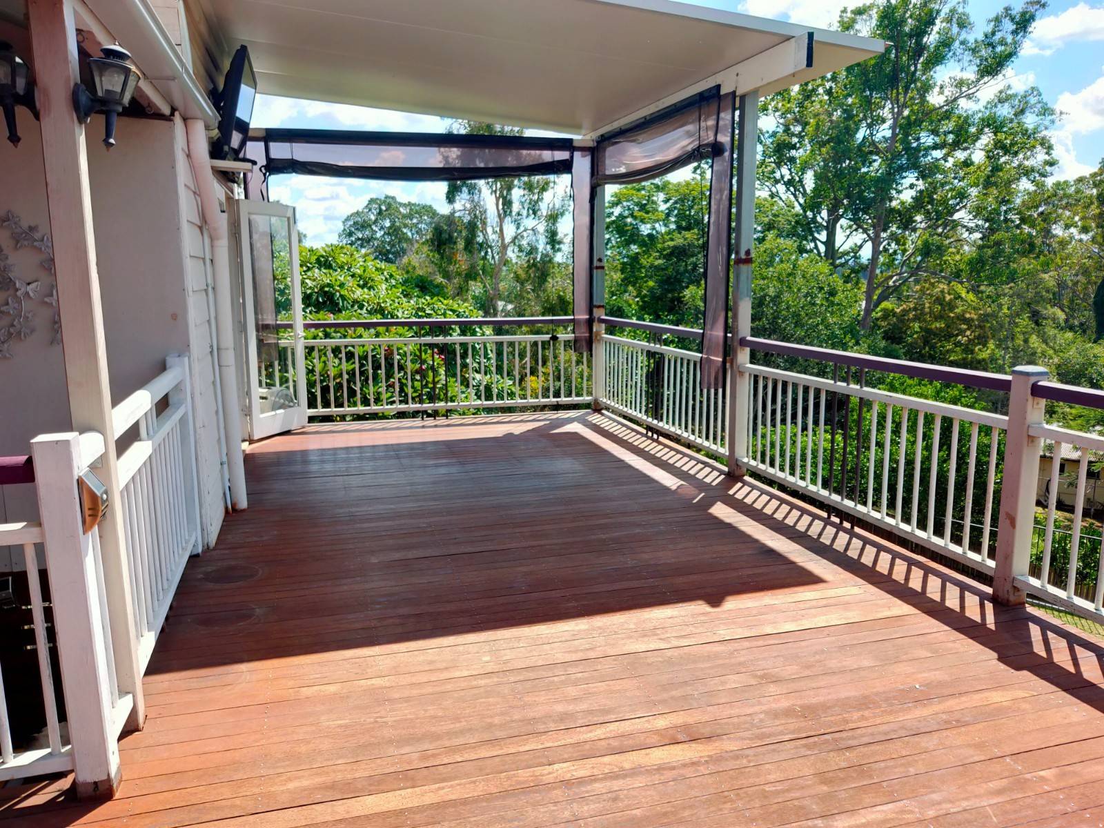 Upstairs consists of front verandah, 2 bedrooms and sleepout, bathroom with toilet, bath and shower separate, large combined dining/lounge area opens onto large back deck, new kitchen with large gas cook top and electric oven, kitchen opens out onto large back deck, fans and air conditioning, laundry, clothes line situated on top deck area the back deck has internal stairs leading to downstairs area which has another large deck area which has access to a 2nd living area/granny flat which consists of 2 bedrooms with built-ins, a lounge/dining area, bathroom with shower and toilet, and small kitchenette area. There is a storage/work area underneath with large water tank for garden use, easy maintained yard, fenced, off street car parking for 3 cars.