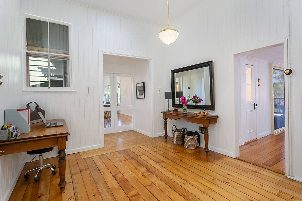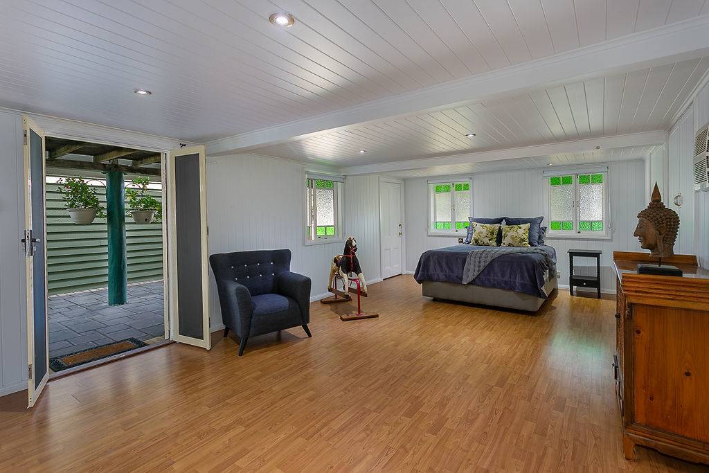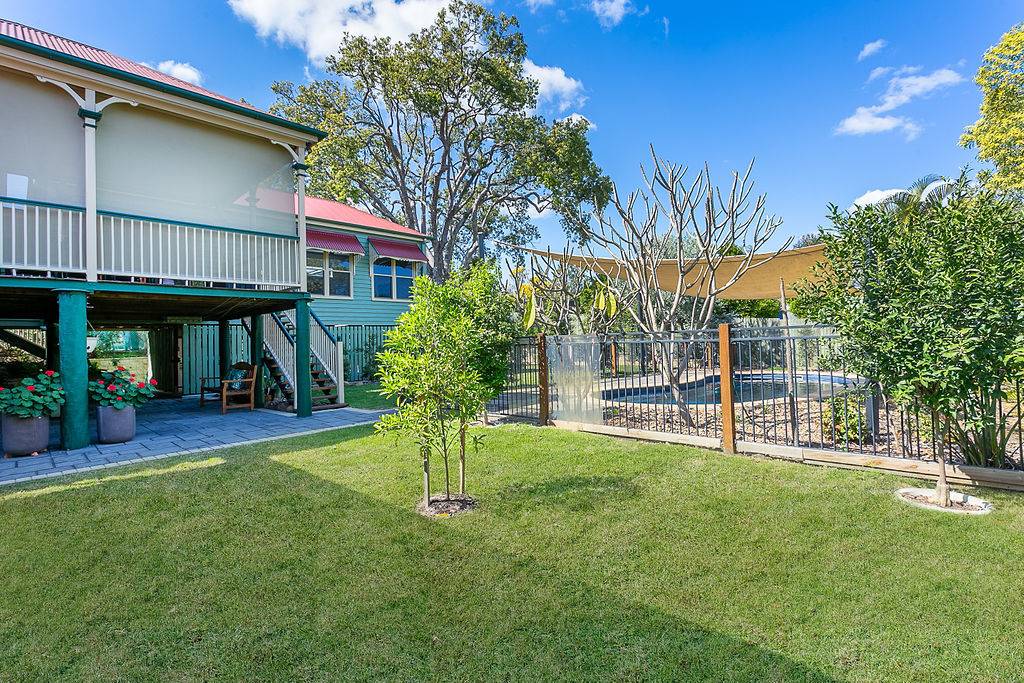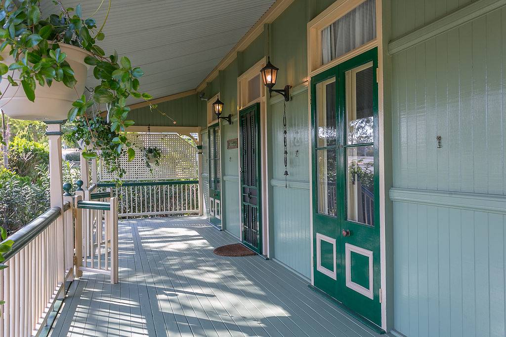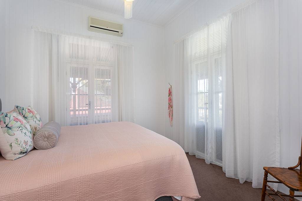 North facing, the front verandah enjoys dappled shade from the Poinciana and is accessed through French doors from the bedrooms.