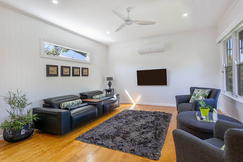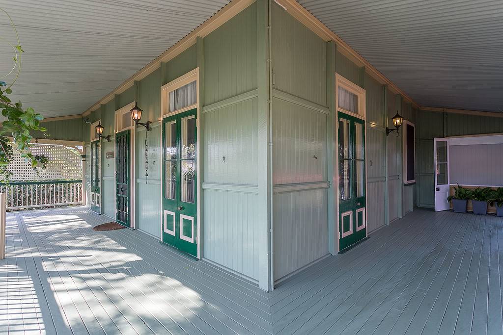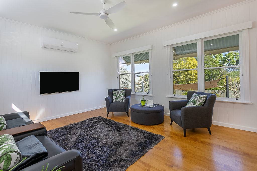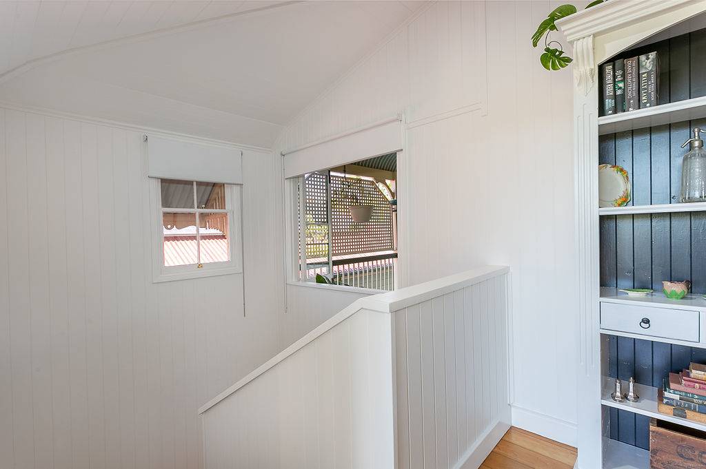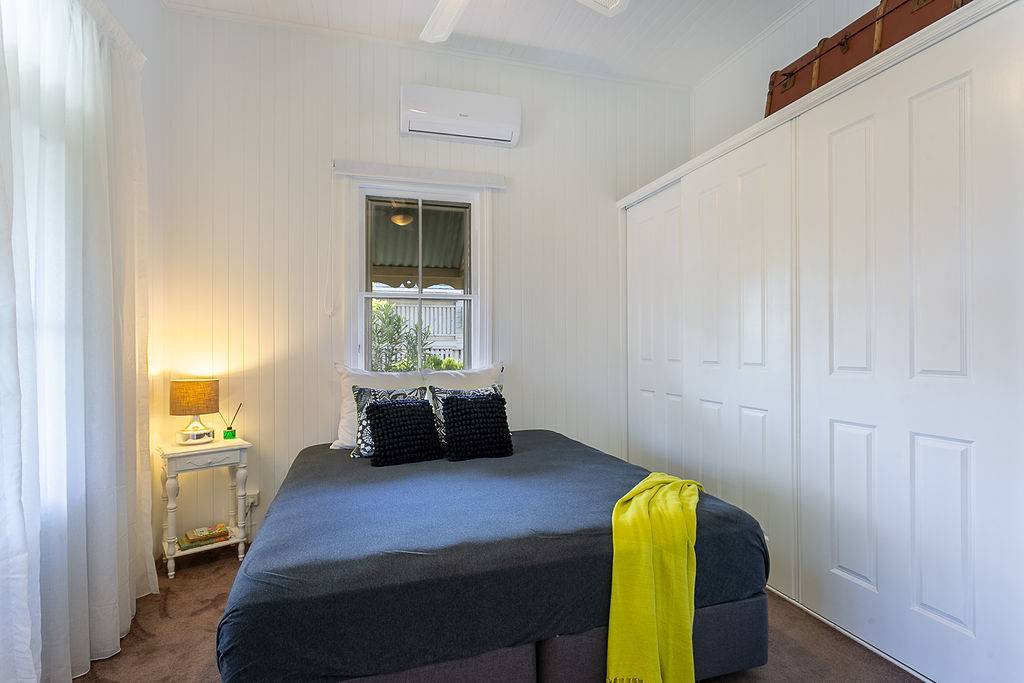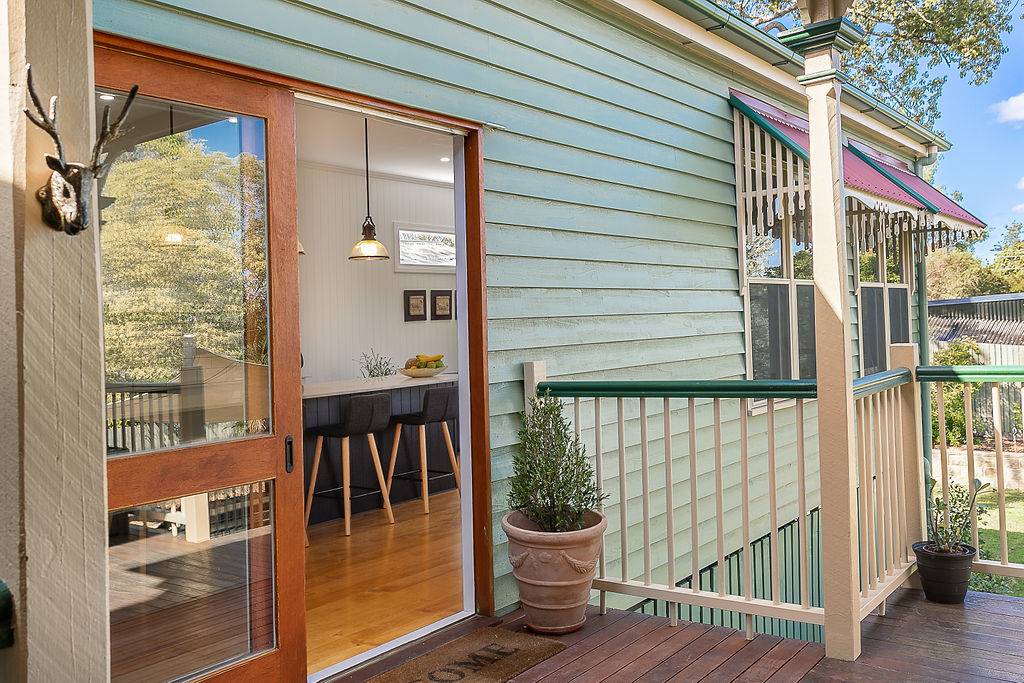 North facing, the front verandah enjoys dappled shade from the Poinciana and is accessed through French doors from the bedrooms.