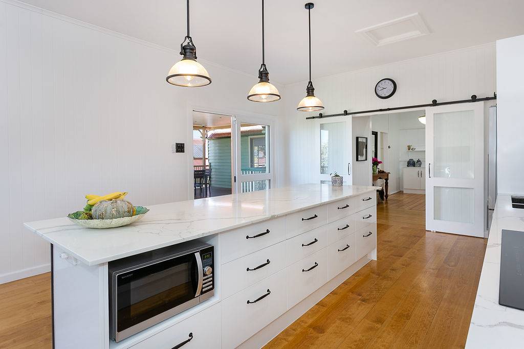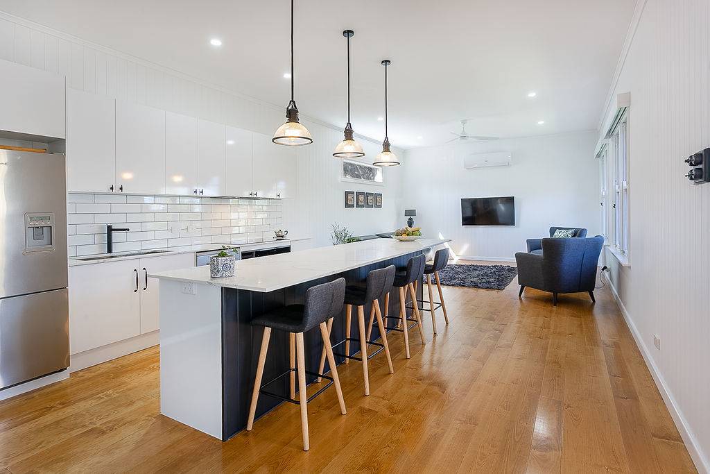 A recent extension with high ceilings featuring new kitchen with subway tiles and stone bench tops is a fabulous family hub with casual living area. This flows out to a pavilion cleverly connected to new extension all in keeping with heritage perfect for family gatherings and summer barbeques.