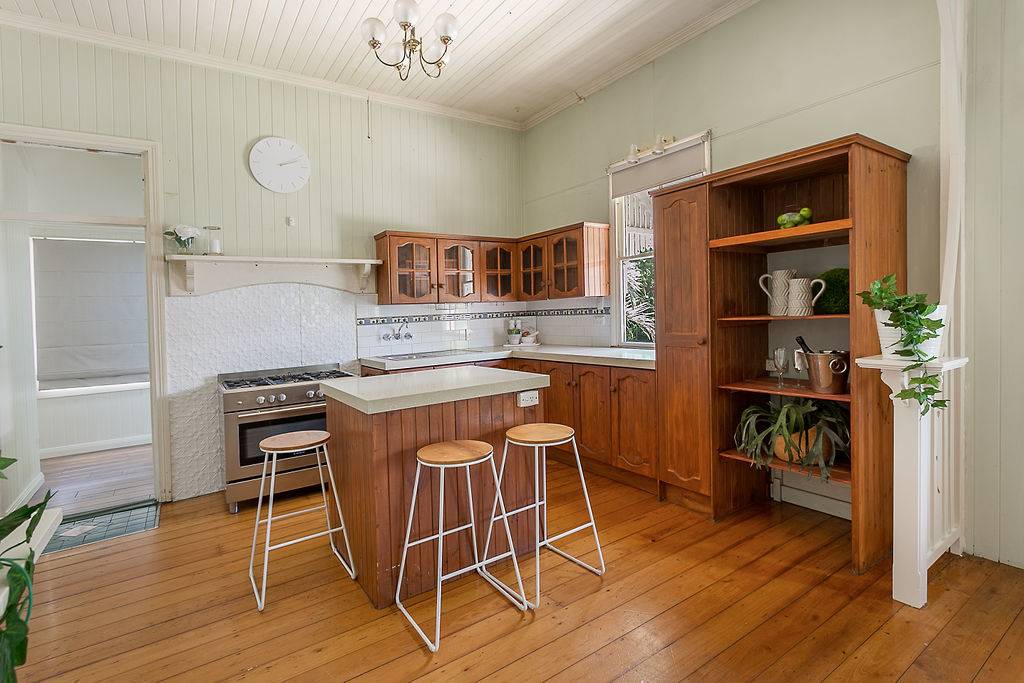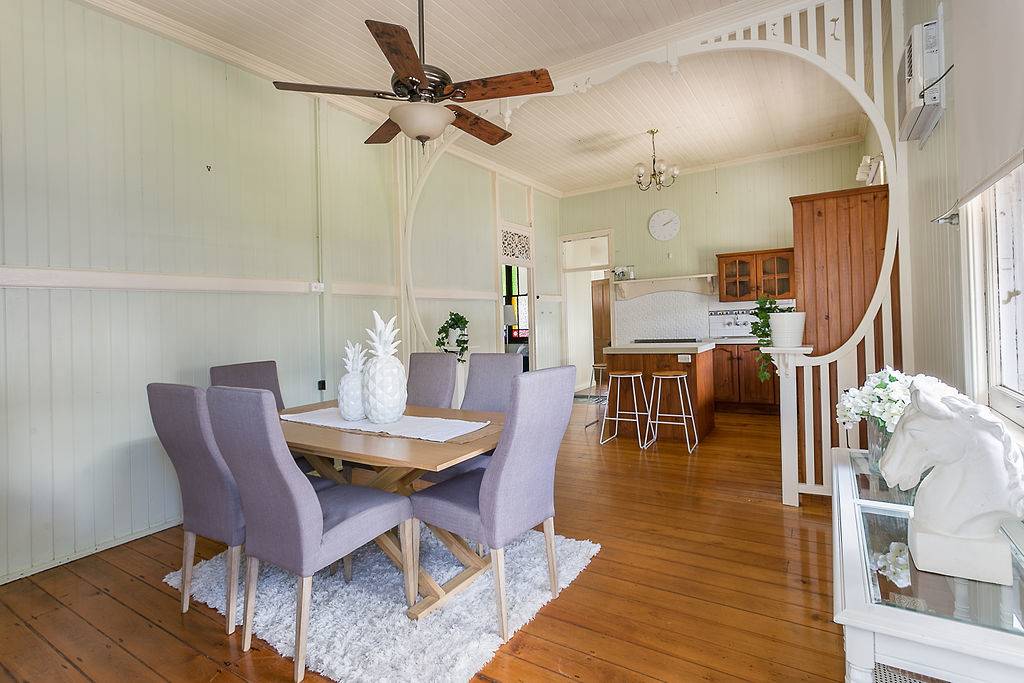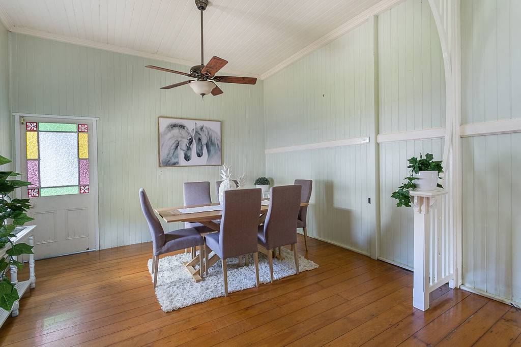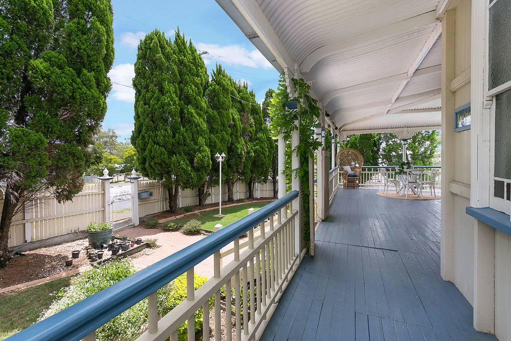 This large home has all the original qualities one would hope for including high tongue and groove walls and hoop pine floors throughout, lace fretwork adorns each doorway and a decorative timber arch separates the large dining area which has access to the Southern verandah. There is a walk in storage room off the main living room which accesses the Eastern verandah. A stunning new bathroom features claw foot bath. The timber kitchen has an island bench, pressed metal splash backs and fabulous stove with large oven. All rooms have access to the wrap around verandahs and are light filled and large. 3 car accommodation is supplied under and fully secured. Framed by a solid picket fence and mature pines this outstanding home is just perfect. Handy location walk to major school precinct, rail, bus at front and only minutes to CBD, Riverlink and Brassall shopping Centre.