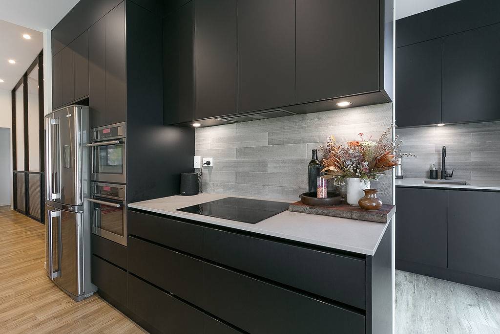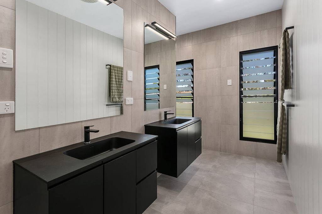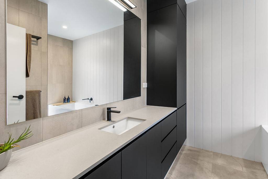 FINISHES: AEG Appliances, Fisher n Paykel rangehood, Fienza Vanities in ensuite (finger pull handles), Matte black bathroom fittings and door hardware, Matte black laminate with finger pull handles in kitchen, adjustable shelving in cupboards and Butlers pantry, Armstrong vinyl plank flooring, Millennium brand tap ware, matte black Akemi style tap ware throughout house, internal Durian hardwood timber stairs, Dynamic garage door, Cesar stone bench tops in bathroom and kitchen - raw concrete, A & L windows and sliding doors