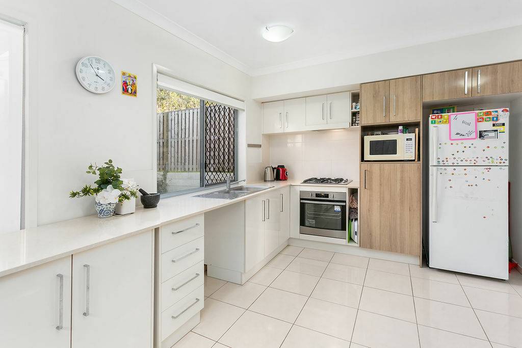 Trendy townhouse with great street appeal in an elevated position on a picturesque house proud street.  All of the mod cons in a well designed 2 story residence on one of the fastest moving areas in South East Queensland.  The lower level has a comfortable living area to the front with separate large  kitchen and dining to the rear spilling out to the private landscaped courtyard.  Internal access from garage is secure and convenient.  A powder room services this level and is adjoined to the laundry.  Internal stairs leads to the upper level which has 2 good sized bedrooms including a walk in robe in the main.  A bonus open area on this level that could be used for study or second living area and features great storage.  The main bathroom features an oversized shower and modern vanity.  A beautiful Juliette balcony is a perfect finish to a pretty amazing package. Ideal investment or affordable home. Proudly marketed by June Frank at Walkers Real Estate