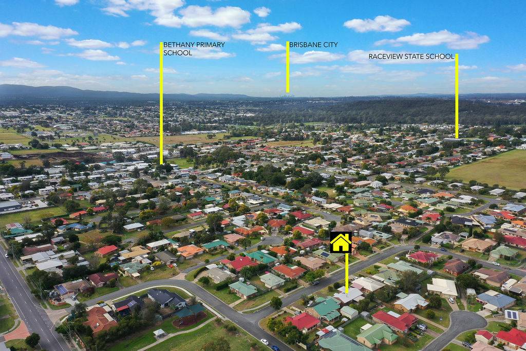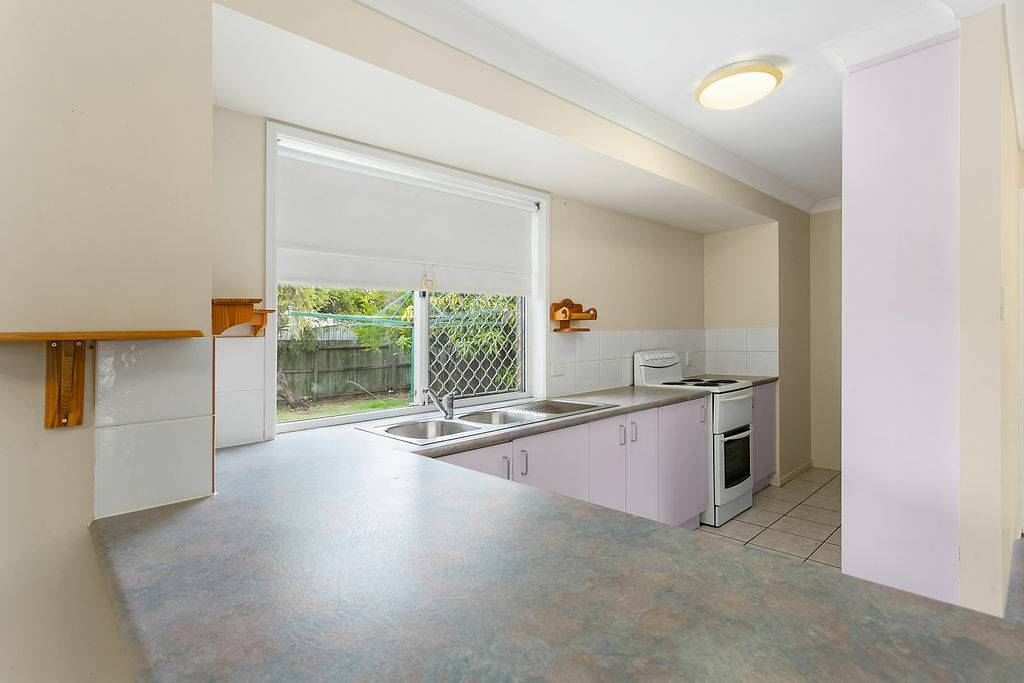 Great value here located in popular Raceview in a quiet street minutes from shops schools and park.  The rear yard is flat and fenced ideal for children and pets.  The sliding door from the living area leads out to the large undercover entertainment area.  A second bathroom-en suite in the main bedroom is certainly a bonus in this price range.  All three bedrooms are built in, have security screens and ceiling fans installed  .  The main bathroom has large separate shower and bath. The galley kitchen has a great pantry and excellent bench space for meal preparation.  Good-size living with internal access to single lock up garage.  Would suit : First Home buyer, single person, retired couple.  Top buying- Won't last ! Proudly marketed by June Frank at Walkers Real Estate