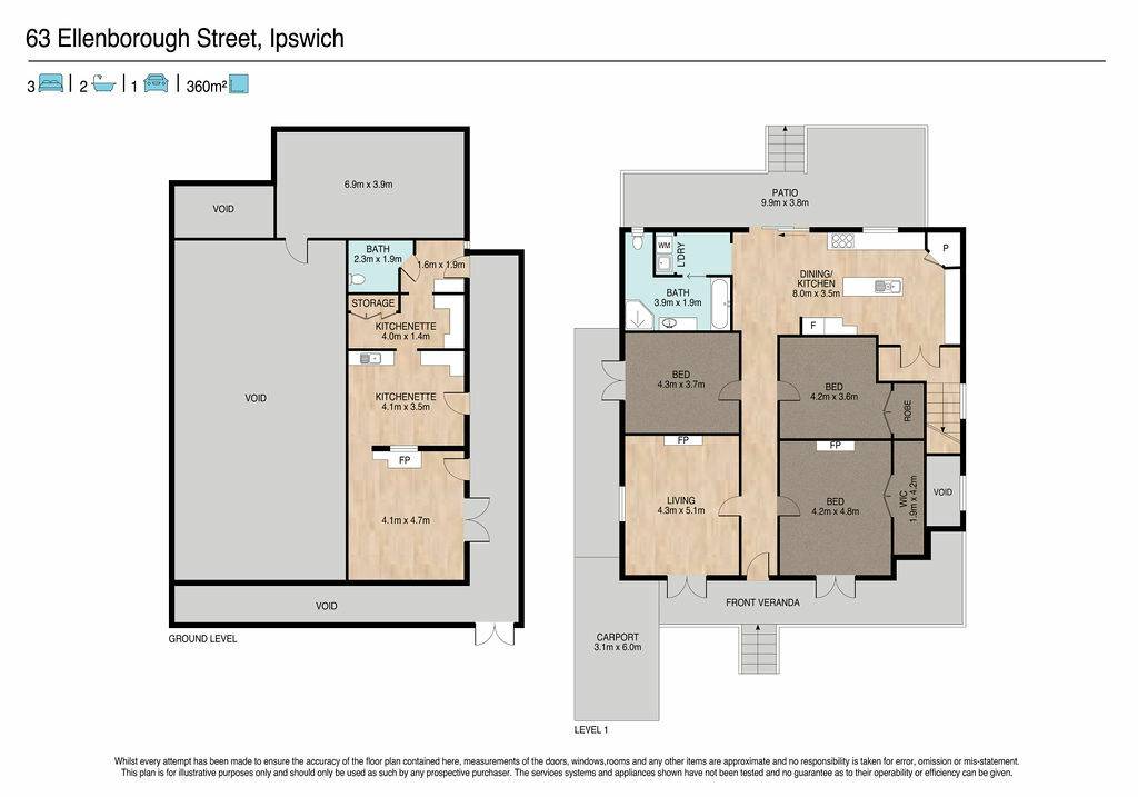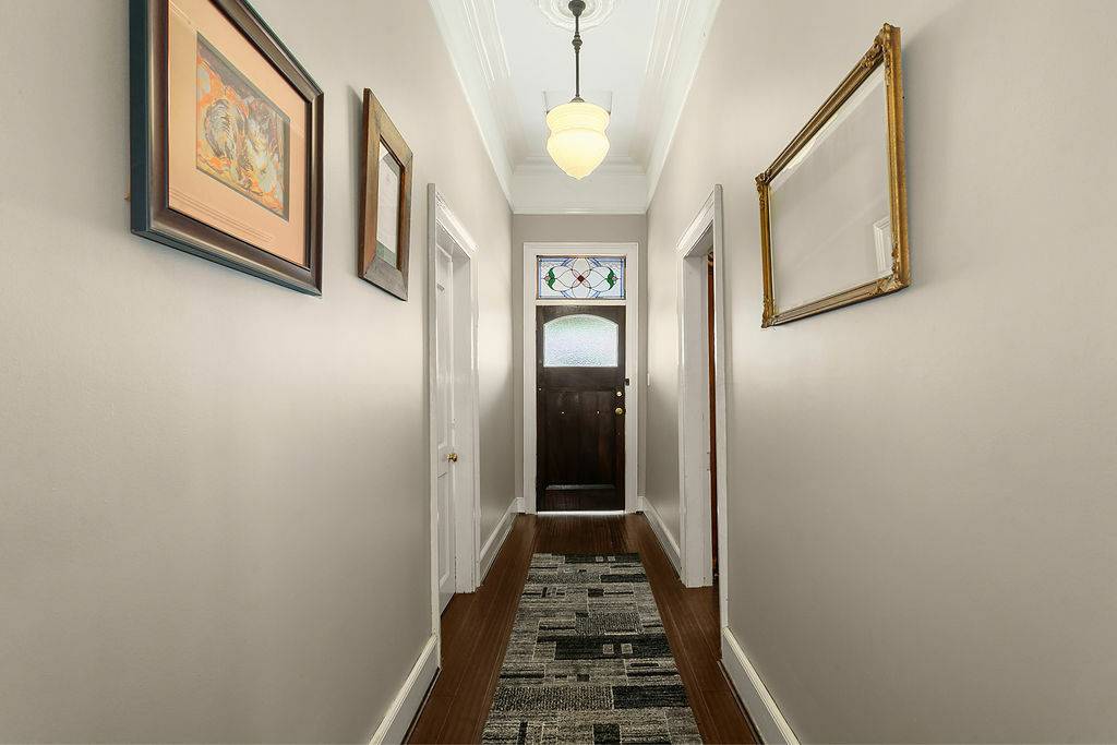 The Silky Oak front entry with leadlight feature has been restored and opens to a long wide hall giving access to the formal living area with fire place and three generous bedrooms, master having fireplace and walk-in-robe, original french doors open to the verandahs.