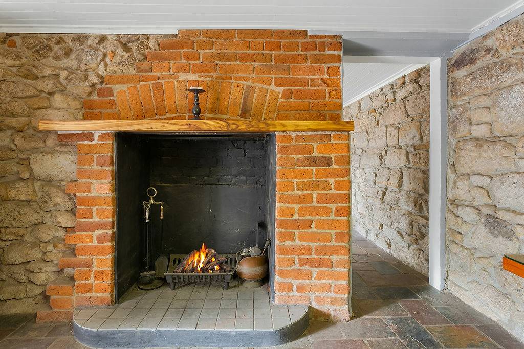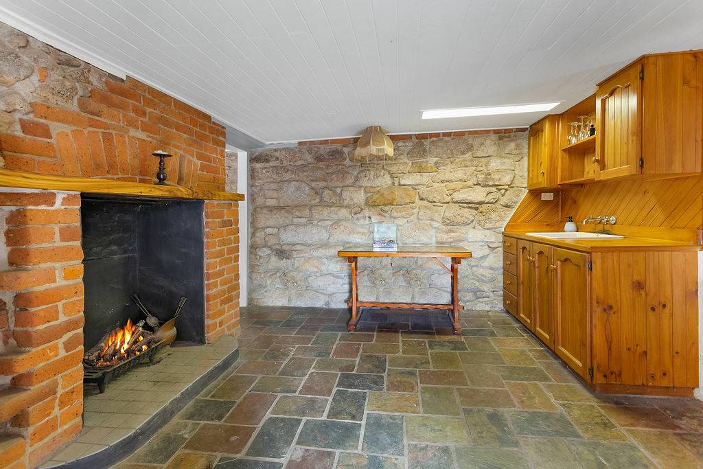 LOWER LEVEL: Sandstone walls as foundations to main house, a fully serviced space as a private getaway area with bathroom, second laundry , meals space and fire place.