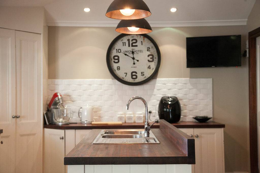 A very functional kitchen with gas stove and island bench services the dining and opens through colonial glass doors to the rear deck.