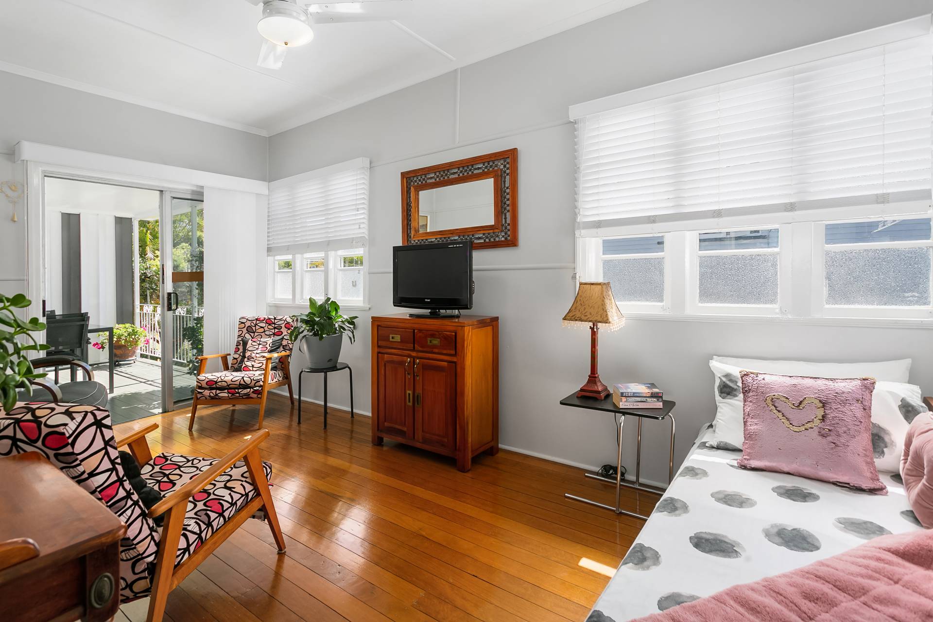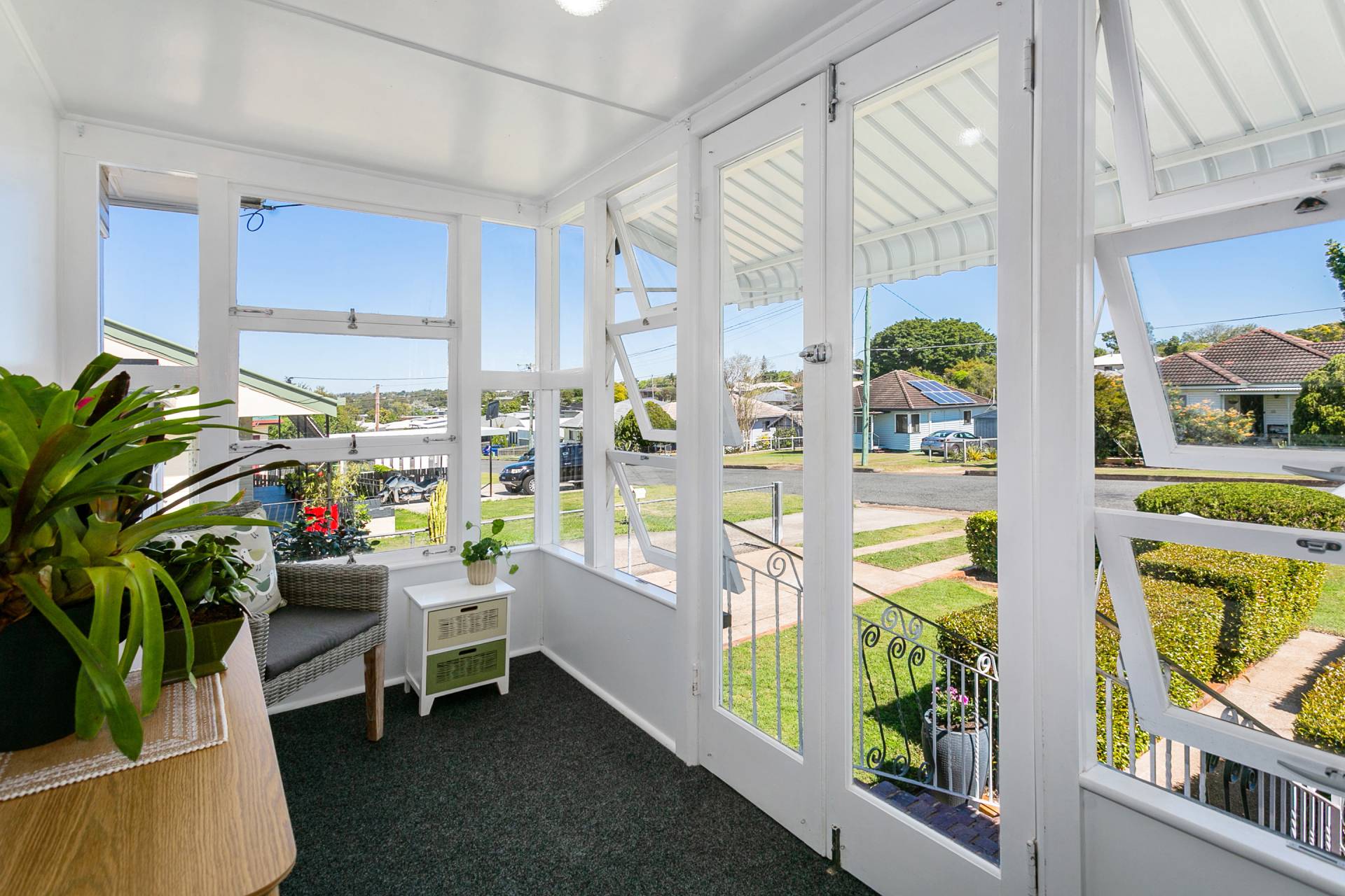 The front sun room is ideal for a quiet read with abundant natural light and breeze