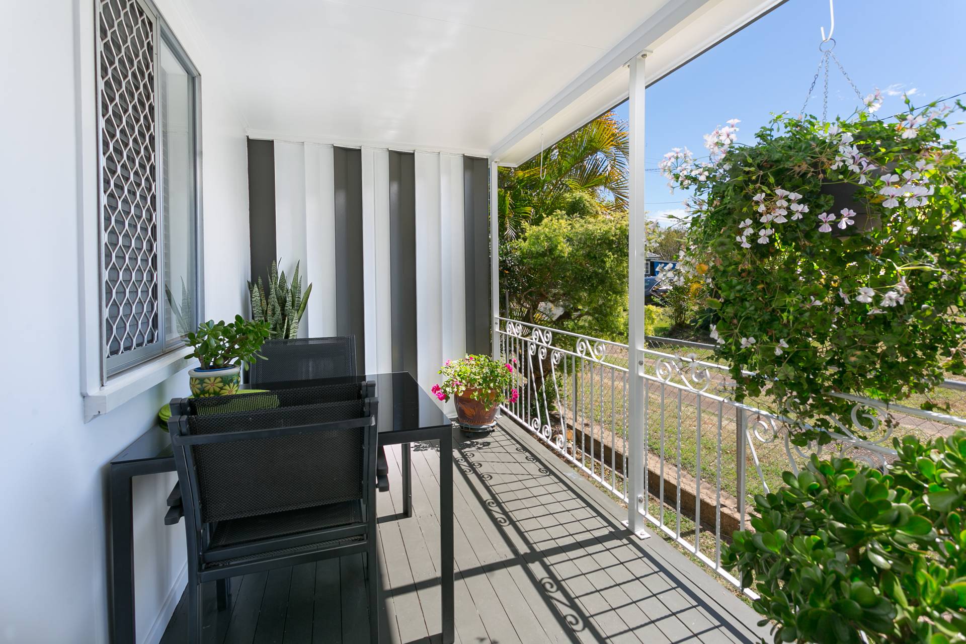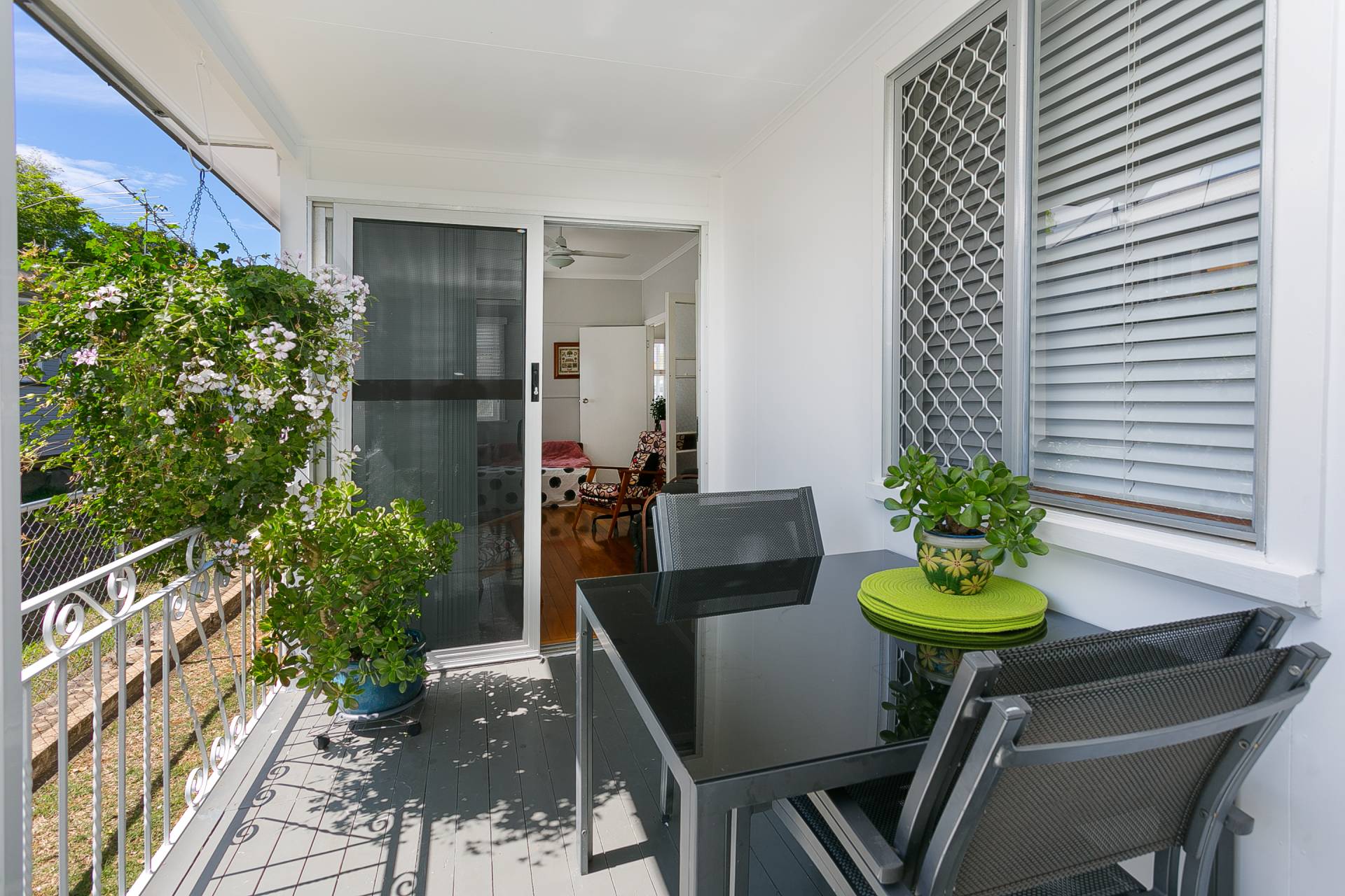 A very cosy private verandah space enjoys northern sun for everyday relaxation