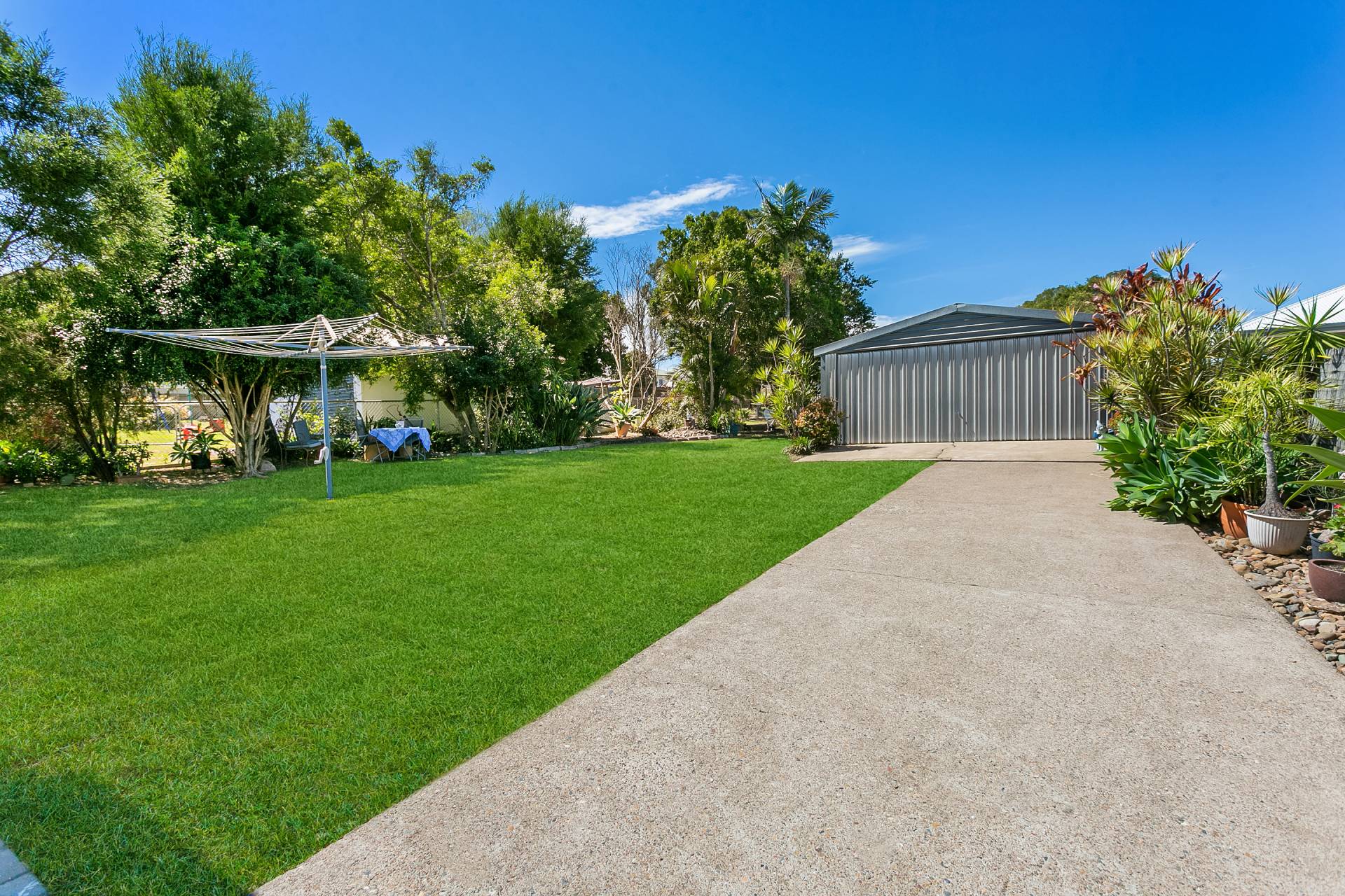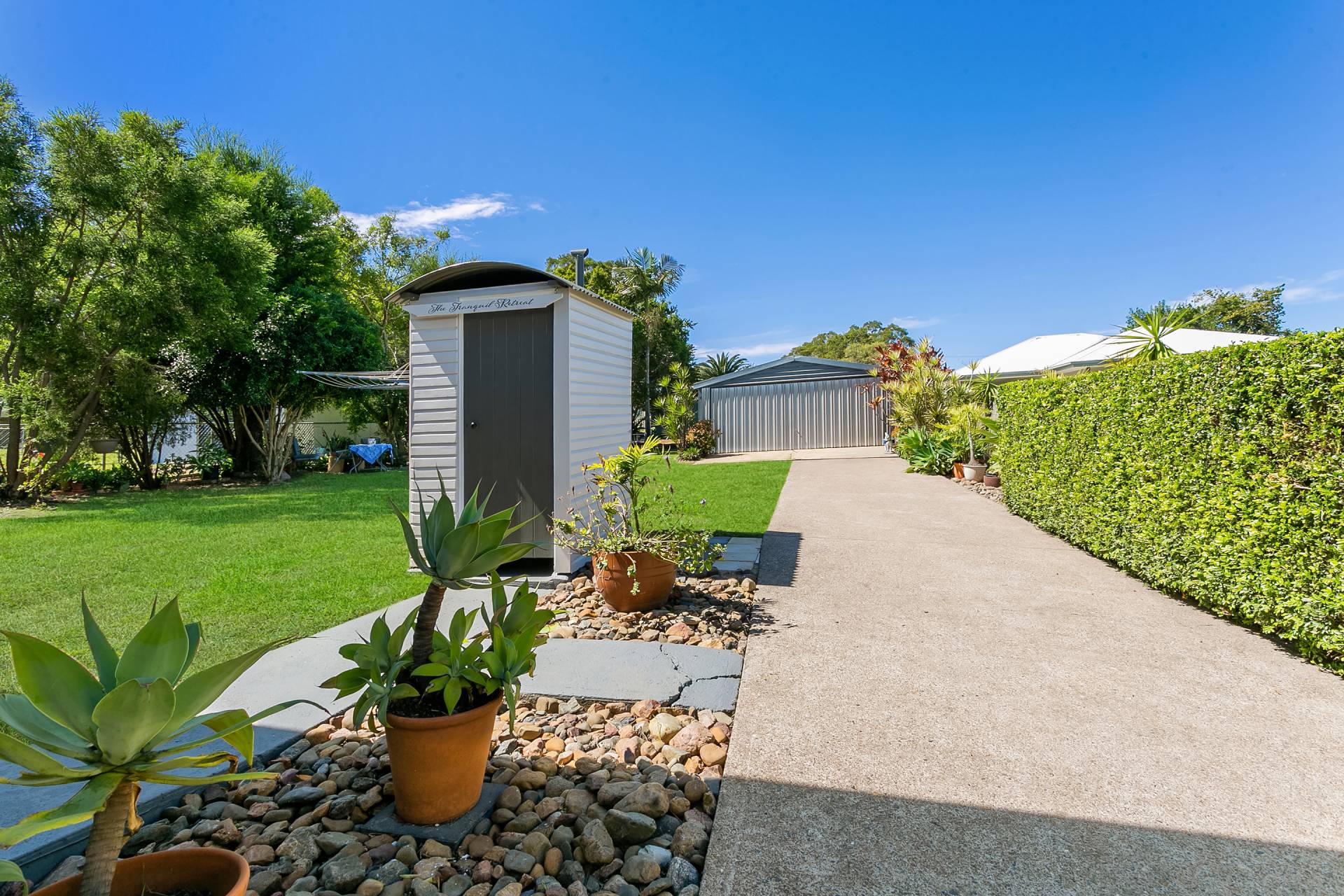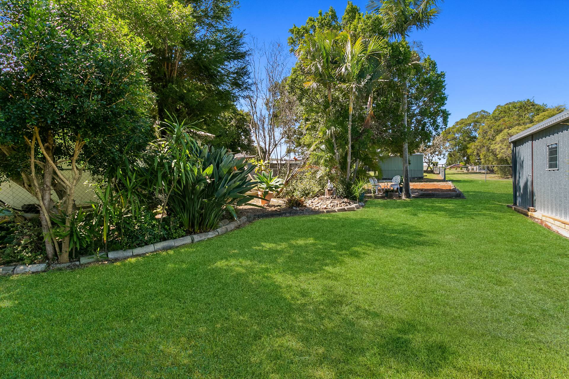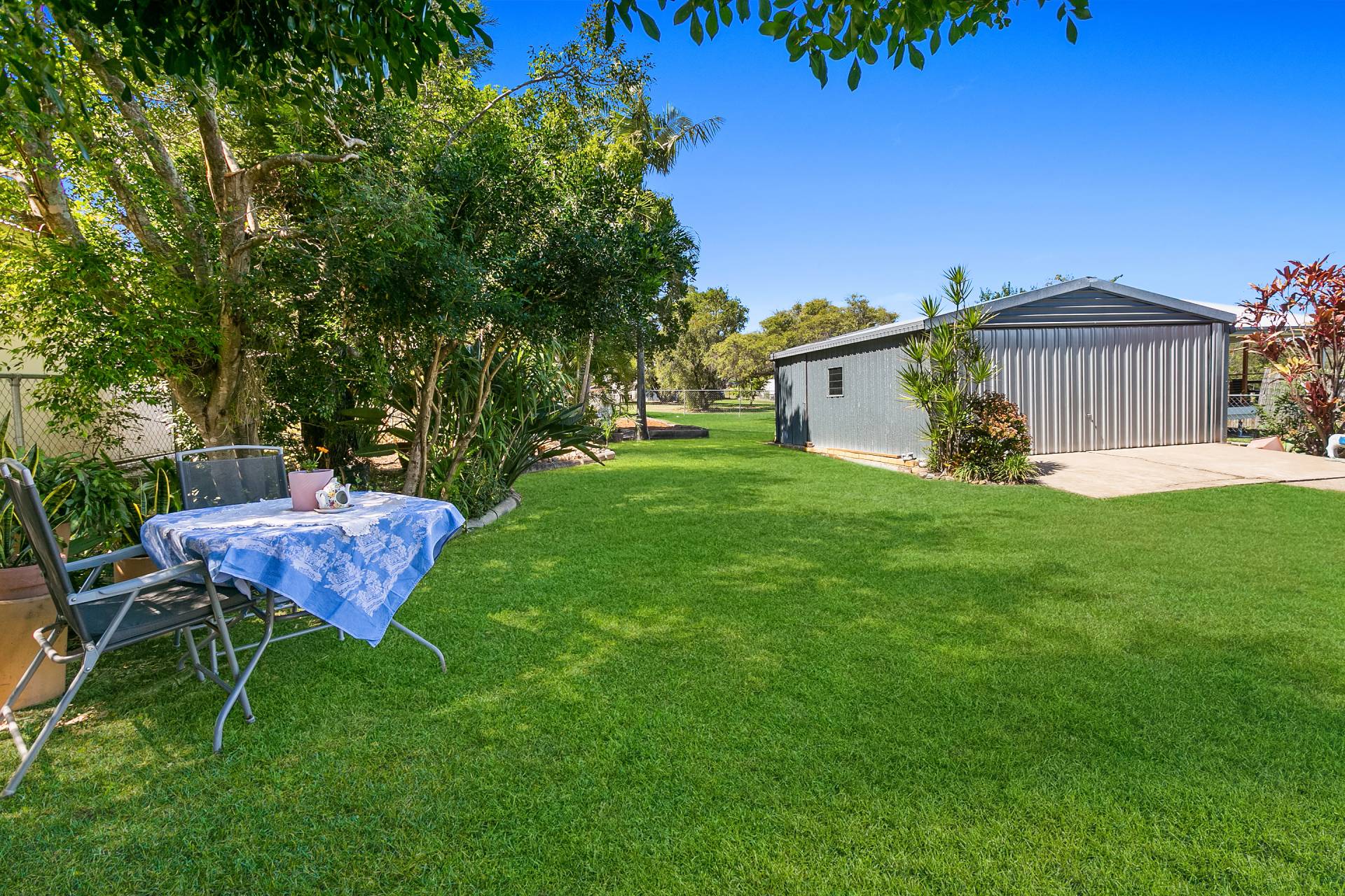 Magnificent yard is accessed through a secure carport
