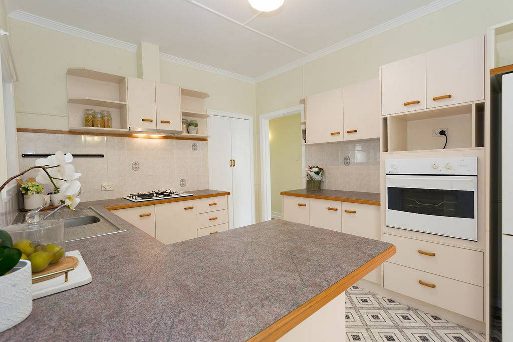 Set high in sought after Eastern Heights this elegant home is a standout on 916m2. Amazing street appeal, freshly painted in today’s colour pallet which contrasting terracotta tile roof and lead-light casement windows. Green lawns roll up to the front door which opens to a large light filled living area featuring horsehair plaster walls and ceilings with detailed cornicing. A sold timber kitchen services this area. All three bedrooms are built in and the family bathroom with original terrazzo floor has been renovated. Entertain in the indoor-outdoor secure living space with breeze bricks for airflow – large enough for pool and there is another outside entertainment space accessed through french doors. Side access on both sides of the house leads to a large shed and concrete pad. Quality build, beautiful presentation. In the catchment area for Central School, minutes from Limestone Park, Queens Park, Coles Shopping Centre and Bus at front.