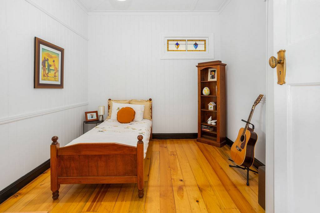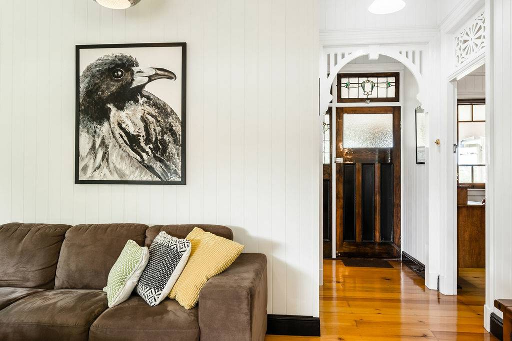 Arriving at the private front porch, ideal for a morning coffee, the original front door with lead light transom opens to a charming vestibule with decorative arch and original fretwork over the doors. Main bedroom to the right features exquisite lead light windows, walk in robe and ensuite.