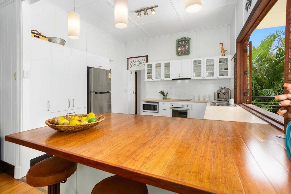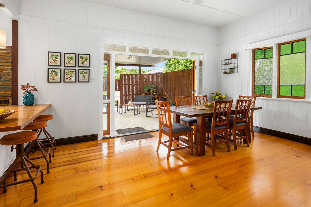 Bedroom to the left of the entry also features lead light transom and easily accommodates a queen bed. Wow – you have now arrived at an amazing open plan living area with easy living incorporating lounge dining and kitchen all flowing out to an impressive deck with insulated roof overlooking the very private manicured back yard. The newly installed kitchen provides well planned and executed pantry and storage space including overhead cupboards with glass doors for display area for special glassware and dinner service. Stone bench tops blend with the polished timber feature bench which doubles as a casual meals area. Bi-fold windows open out to the deck which makes this an entertainers delight. Have all the family over plus friends for the happiest gatherings.