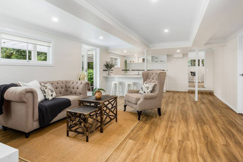 View the children playing in the leafy private back yard while working from home. A completely separate entrance can ensure privacy to the other space a delightful timber promenade is perfect for alfresco dining and the largest gathering can be had with the under-court entertaining area.