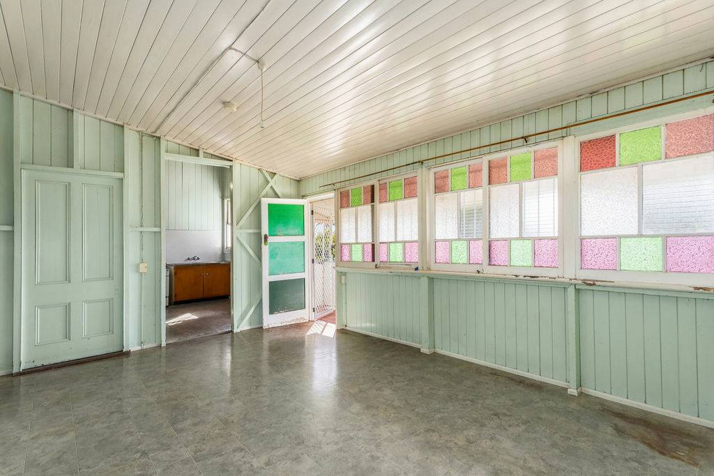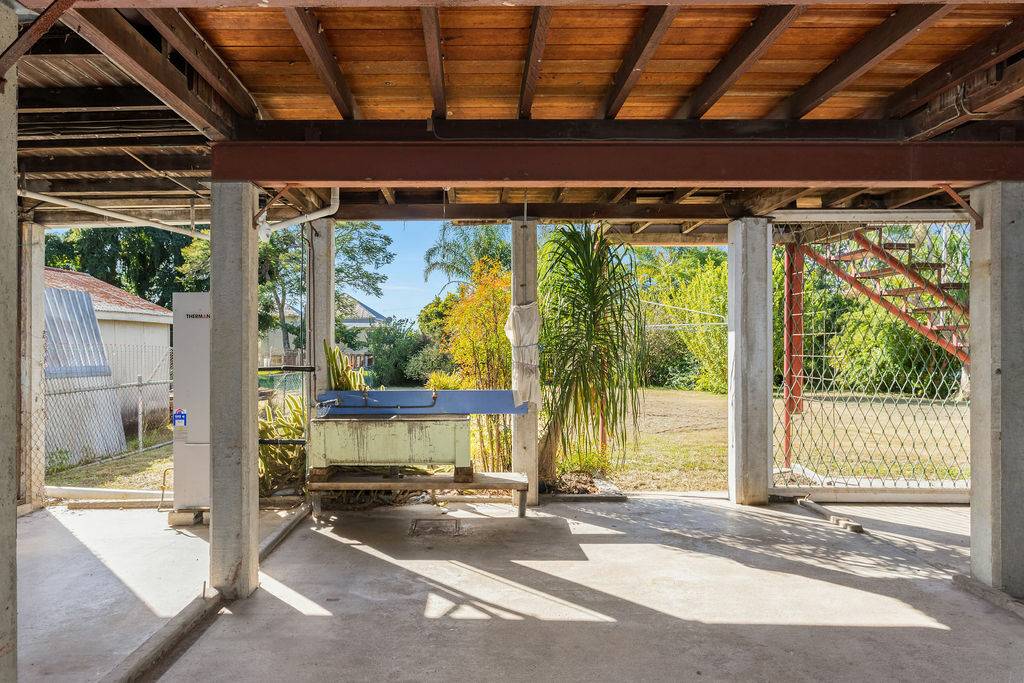 Alternately this quintessential colonial home awaits a renovation to open side verandas and maximise the original features including – coloured glass windows, vj walls and hoop pine floors. The house has been re-stumped with concrete stumps and RSJ’s. Enclosed under perfect for storage – workshop or entertaining.