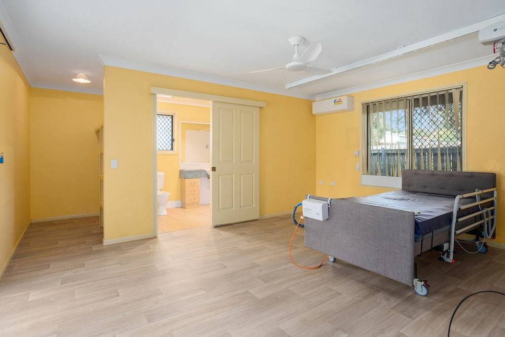 Four generous bedrooms would accommodate 2 carers and two clients, or a family with a member with high care needs. A main bathroom provides separate bath. Two large living areas give great separation and have access to the undercover area facing north-east.