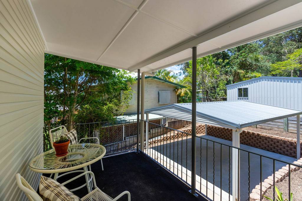 Great space is offered in the home which has been professionally painted both internally and externally. Timber floors have been polished and new blinds installed. There is a great sized living room area upstairs with front enclosed patio, huge kitchen providing good storage and bench space, dining and back patio overlooking this private backyard with bush setting.  Internal stairs access the bonus space under, ideal for games /TV room with second bathroom and laundry.