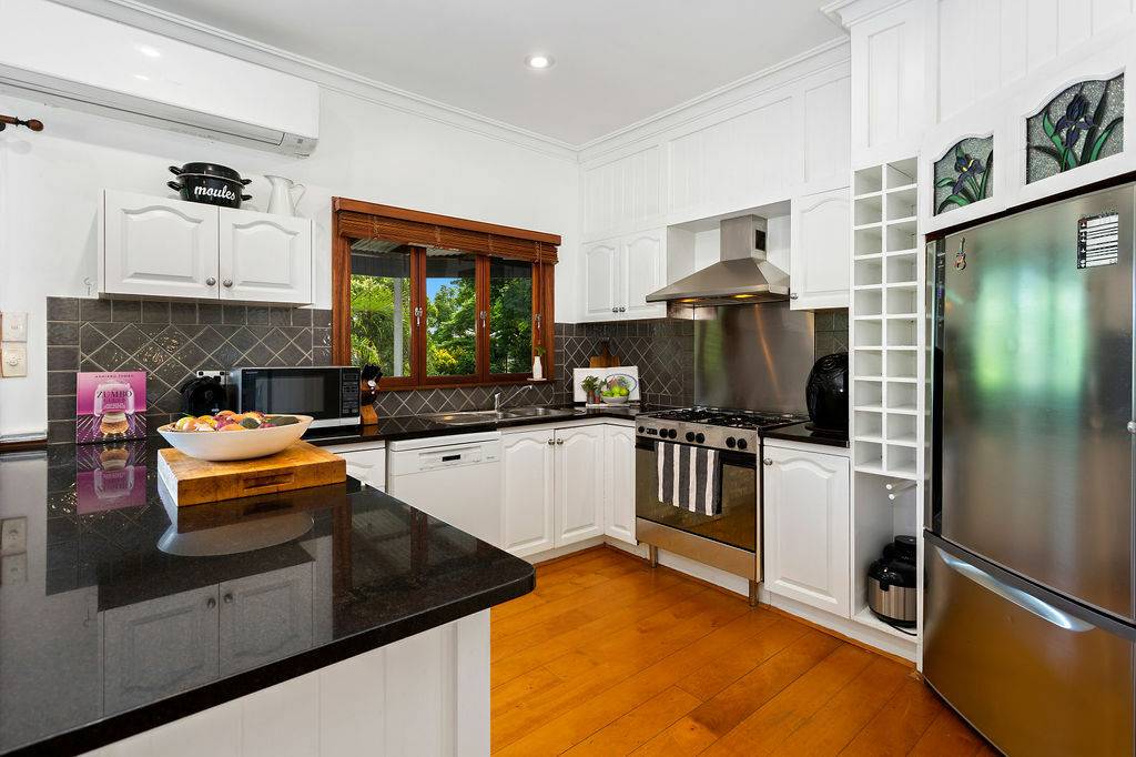 Perched atop the ridge on Woodend Road amongst a plethora of character homes this is a feature packed home with practical benefits. Striking exterior colour palette with charcoal walls and crisp white rails and lattice work finished to perfection with the white picket fence.
