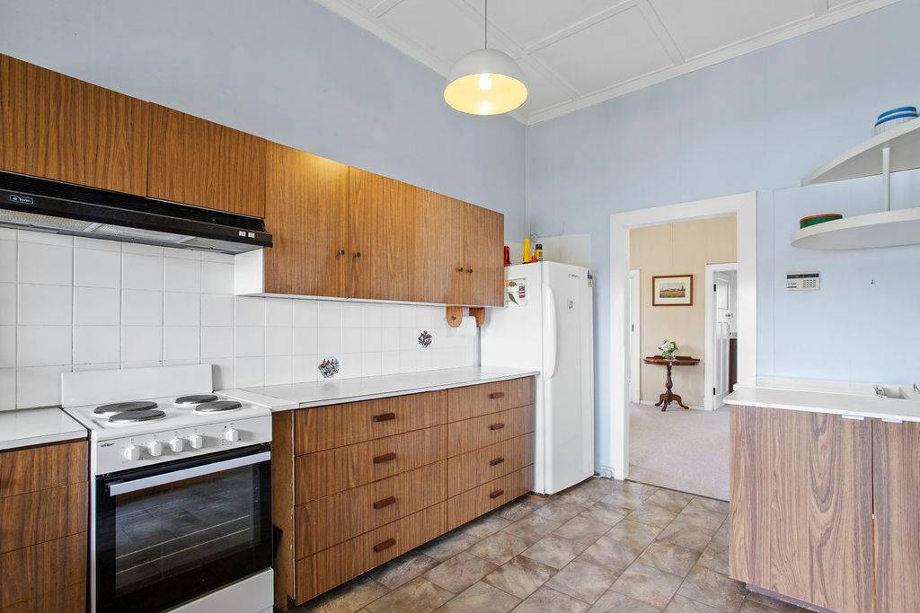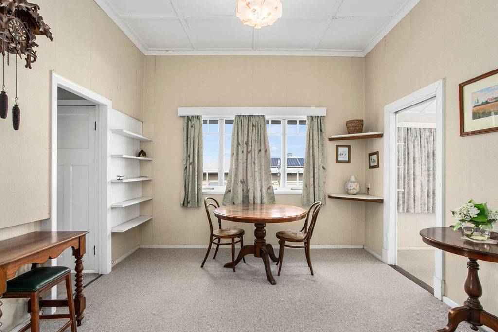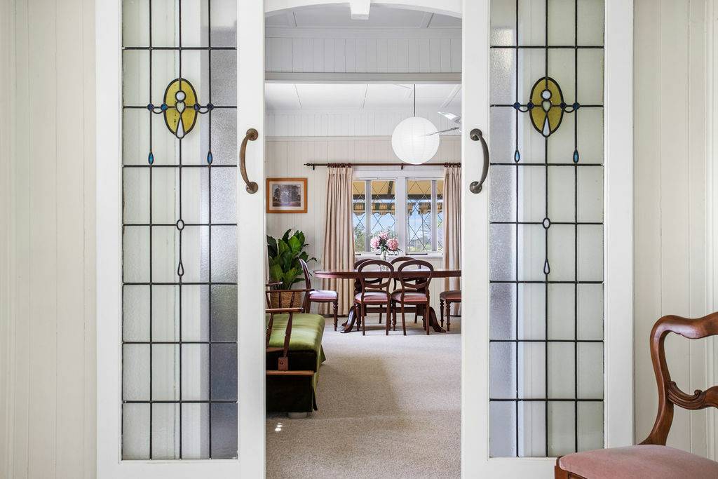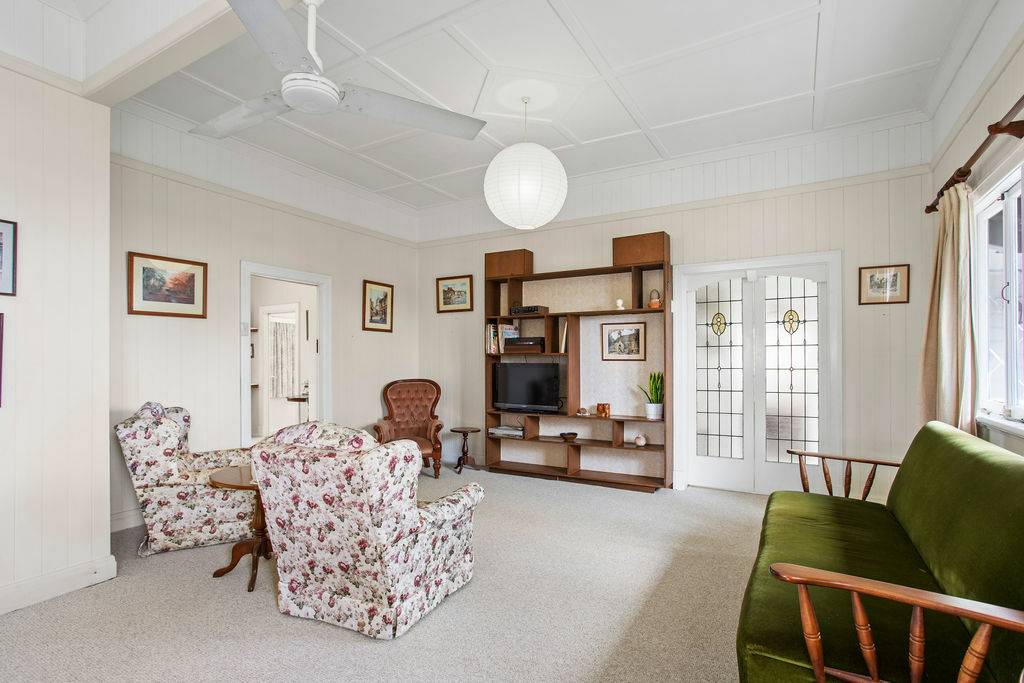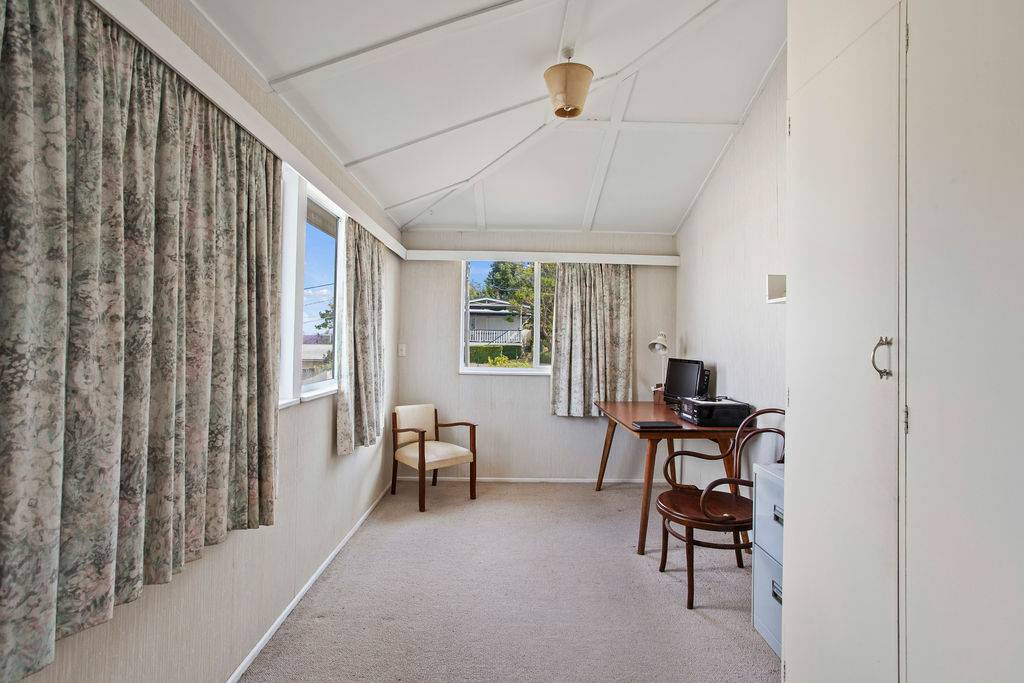 The home has 10ft ceilings maximising the volume of space.  Large banks of casement windows throughout provide light and breezes with exceptional views from every room.  The formal entry features lead light doors which open to the massive formal lounge and dining.  The kitchen adjoins the living area and has access to the rear deck.  The main bedroom has an ensuite and the two other bedrooms are built-in.  A separate room would make an ideal home office or separate informal living space.  A trap door opens to a secret internal stair case providing internal access to the lower level. The main bathroom with separate water closet is central to this level.