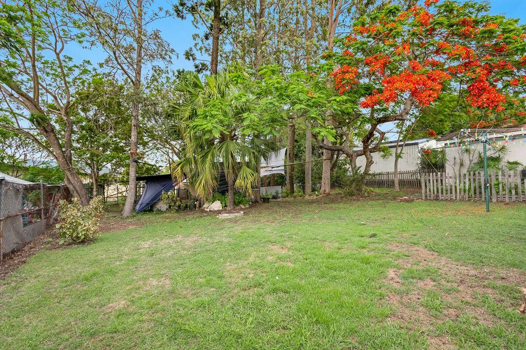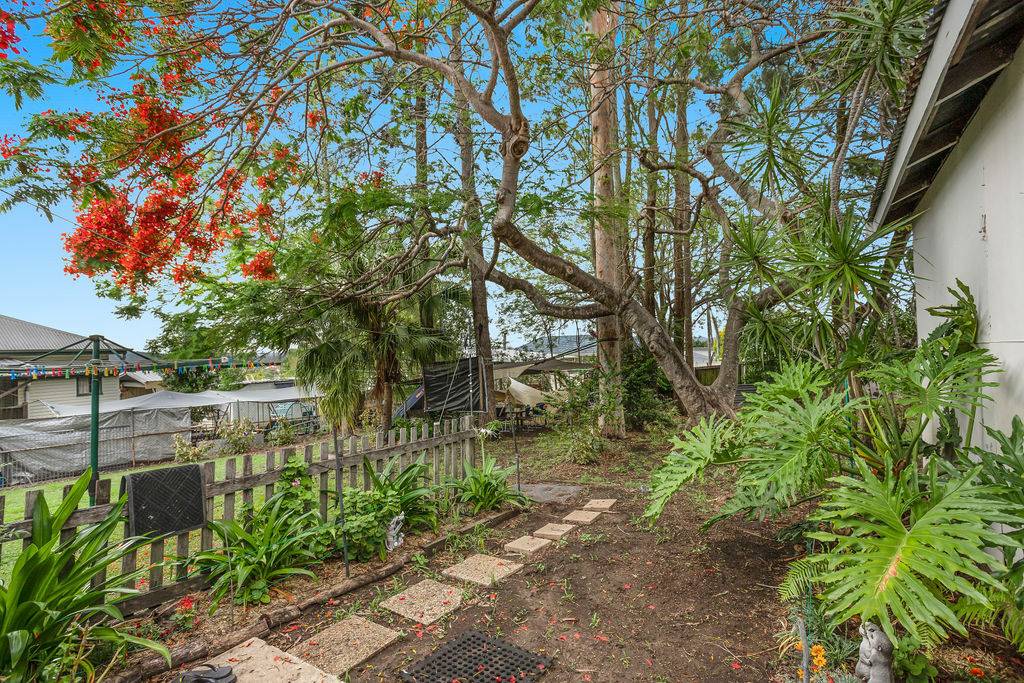 Beautiful back yard with mature canopy including an outstanding Poinsiana tree.