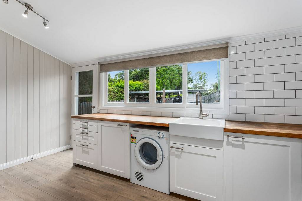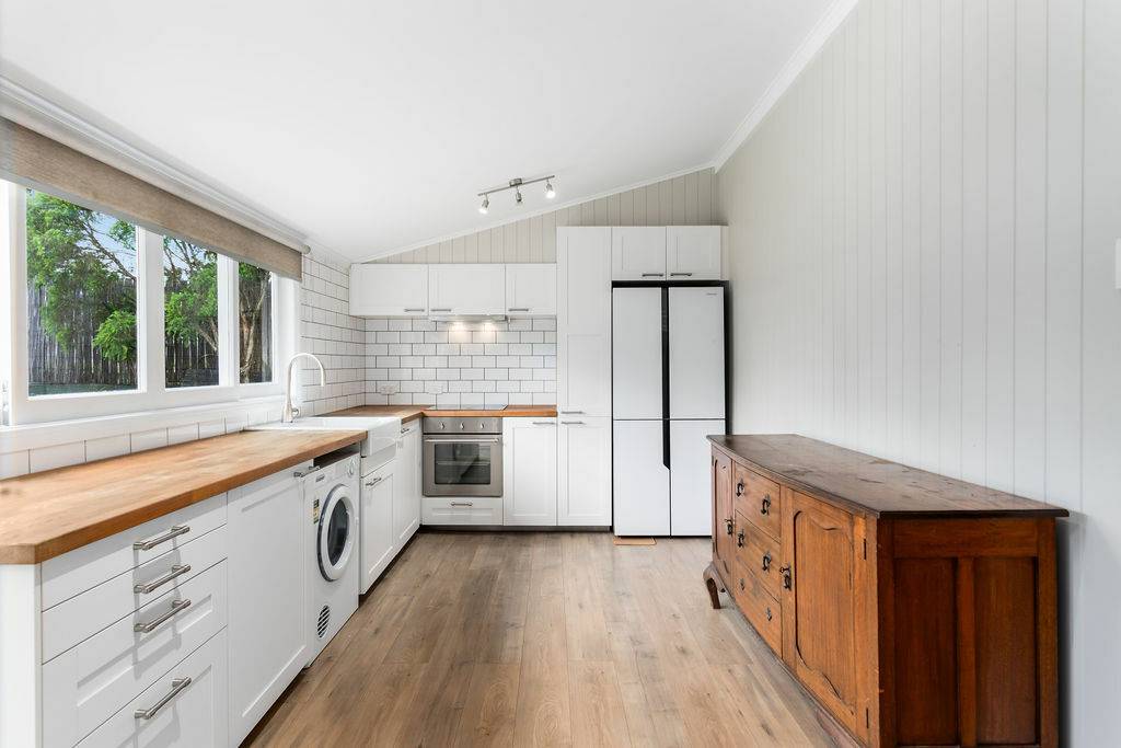 The kitchen has been tastefully renovated with ample storage space and a charming timber bench top with plenty of preparation space.