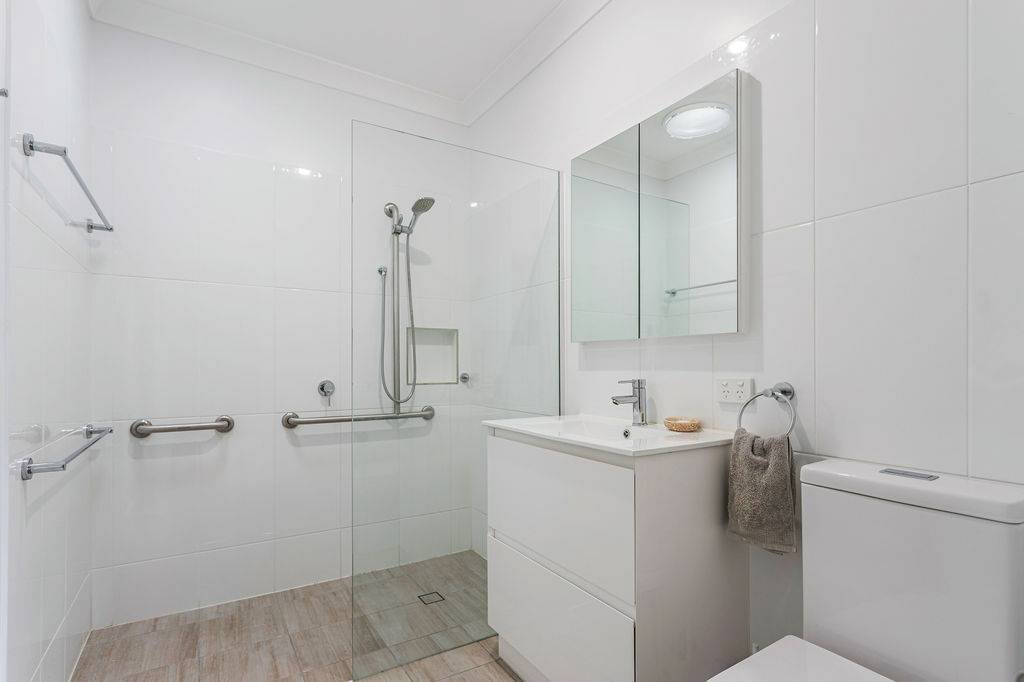 A new bathroom has been installed with large double shower, vanity and toilet.