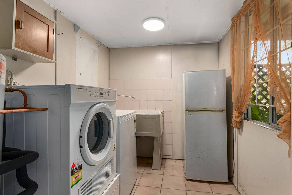 A fully enclosed utility area provides space for the laundry and second water closet.