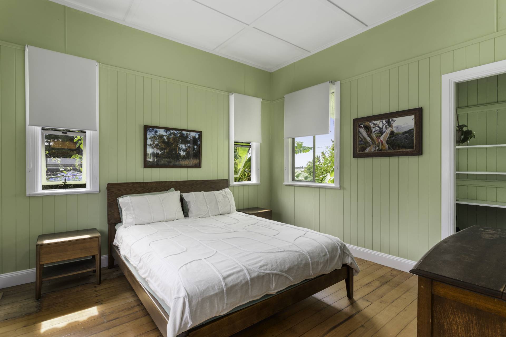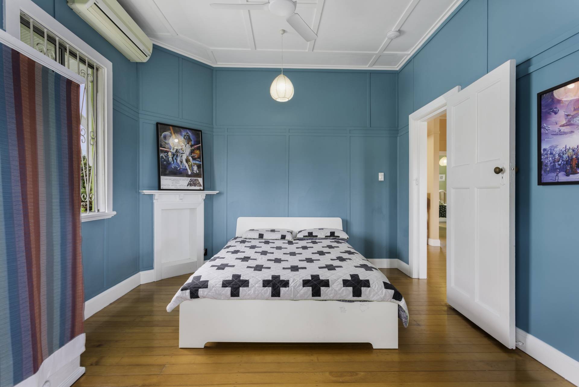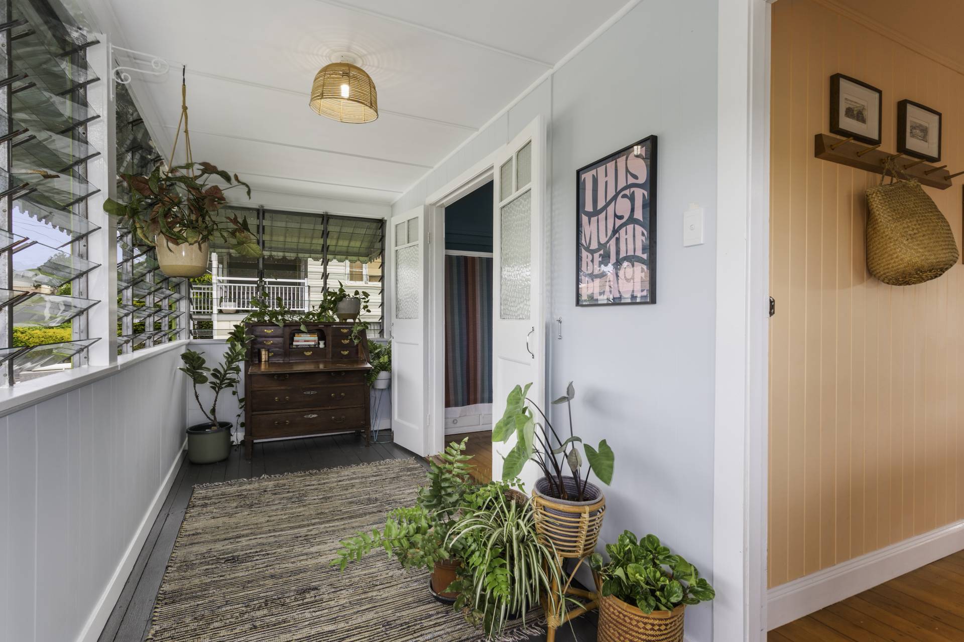 Three large bedrooms are surrounded by the central bathroom with an eye-catching pink and mint colour scheme. The front verandah is enclosed and is ideal office space.