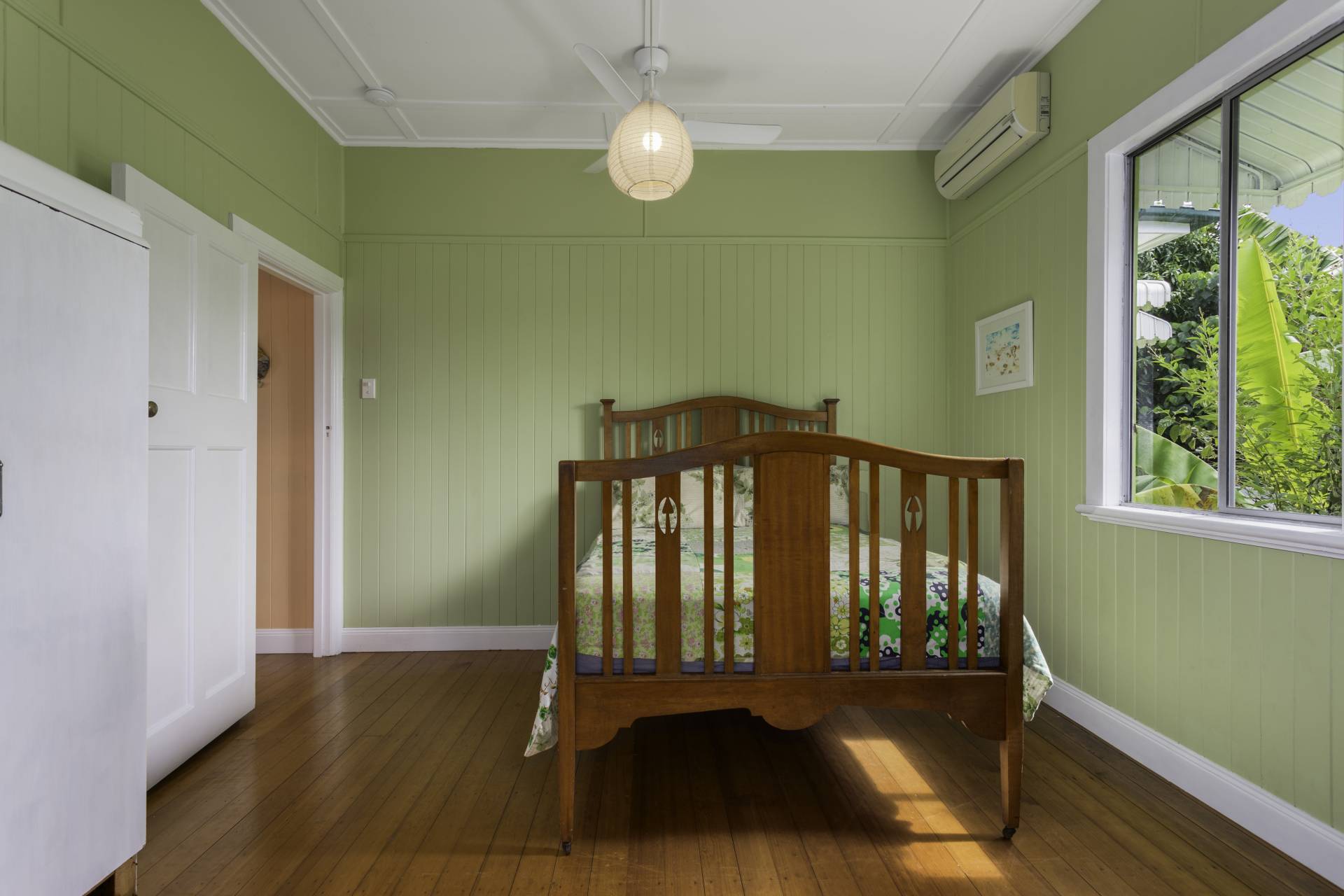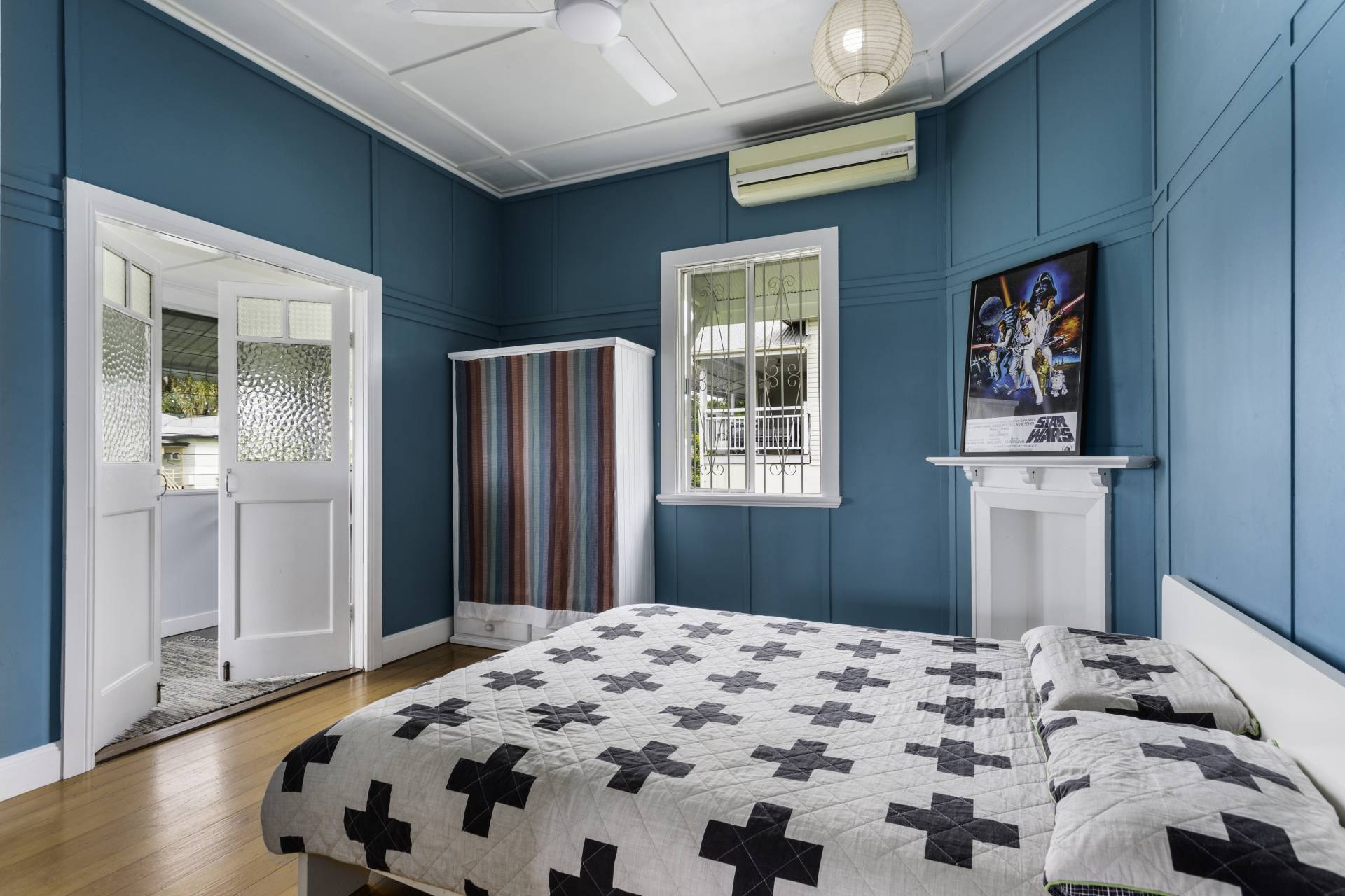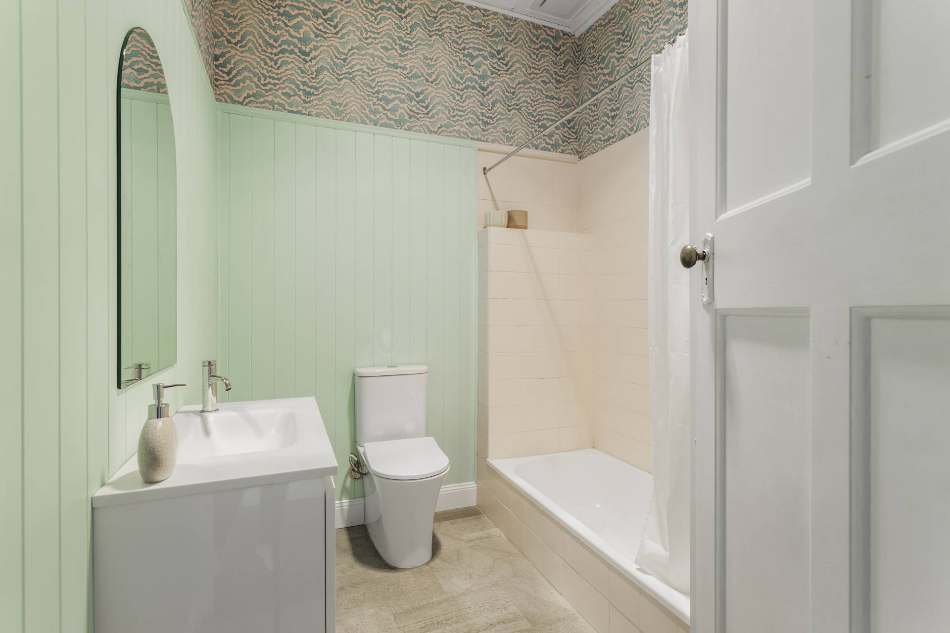Three large bedrooms are surrounded by the central bathroom with an eye-catching pink and mint colour scheme. The front verandah is enclosed and is ideal office space.