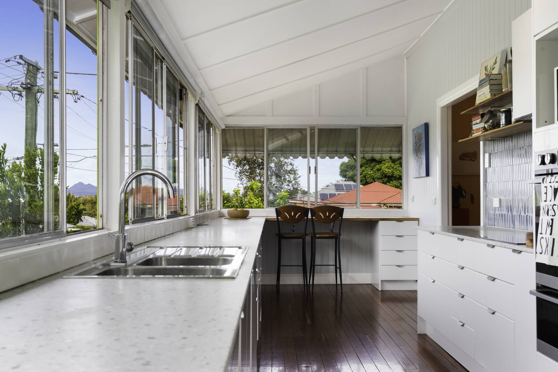 Perfect family home oozing with period features including tongue and groove walls, and pine floorboards throughout. This open-plan living space is light-filled and breezy and provides living and dining space culminating in a south-east facing kitchen with huge bench space where you can enjoy a coffee or meal overlooking an uninterrupted view of Flinders Peak.