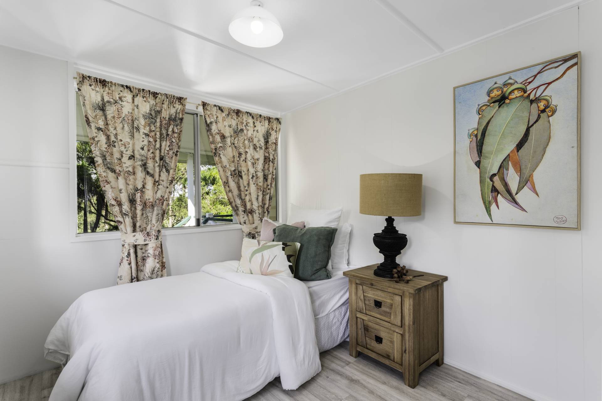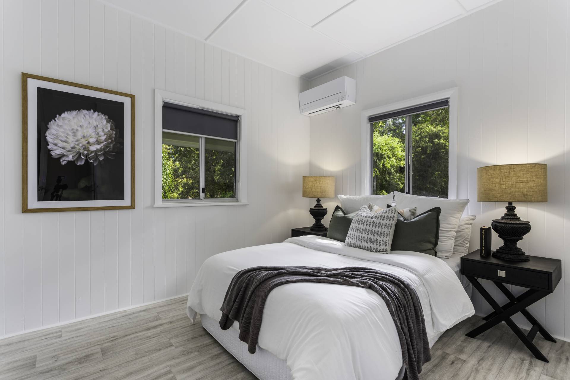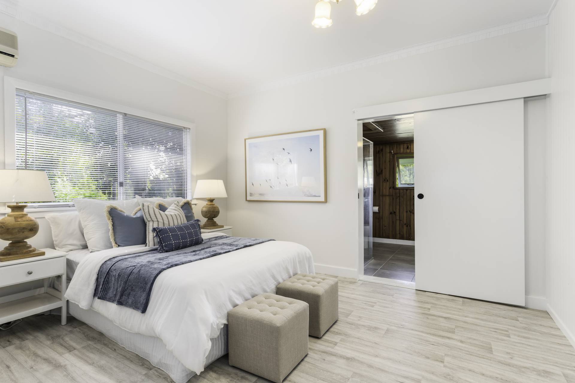 Four-bedroom plus study space could double as offices or a possible AirBnB. A second bathroom and laundry are located on this level. Beautiful gardens surround this home.