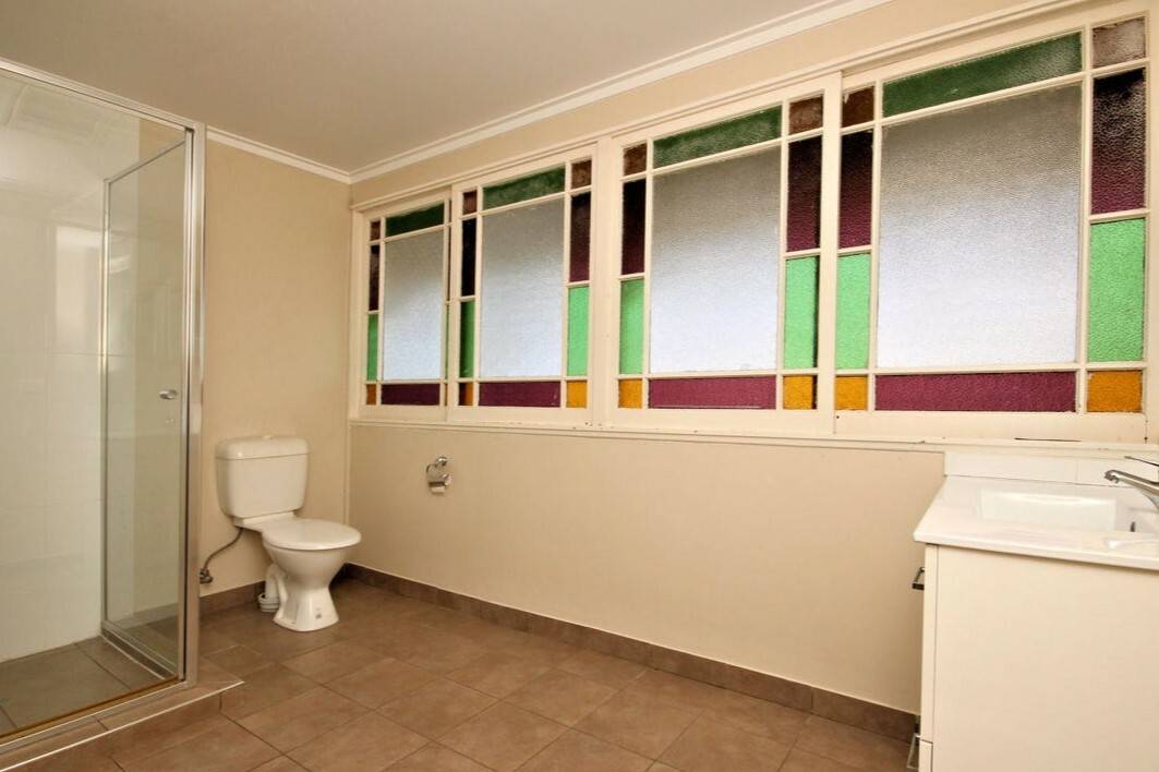 Gleaming wide pine floors throughout with decorative arch and glorious coloured glass windows.