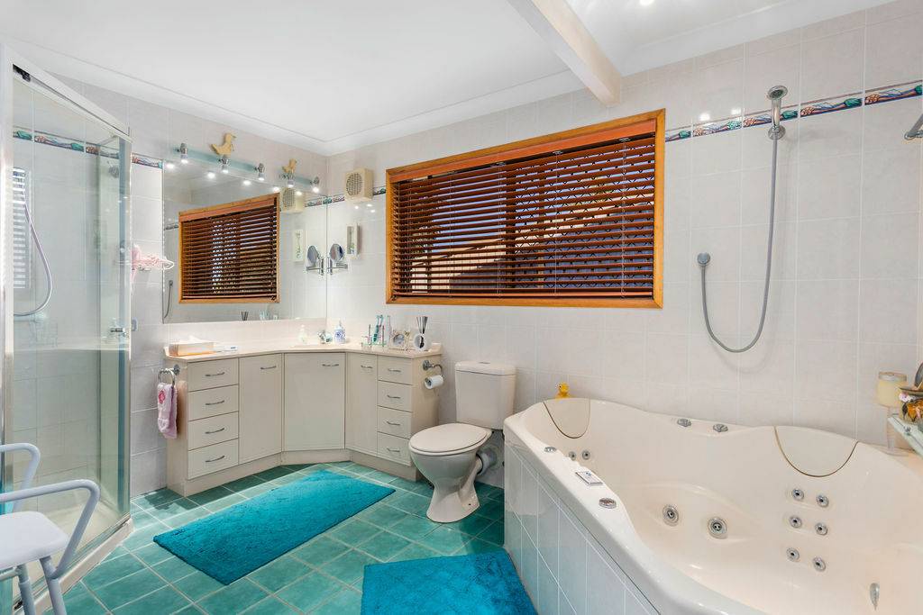 The double garage leads off the downstairs hall and has a massive workshop storage area ideal for the tradie or home hobbies.