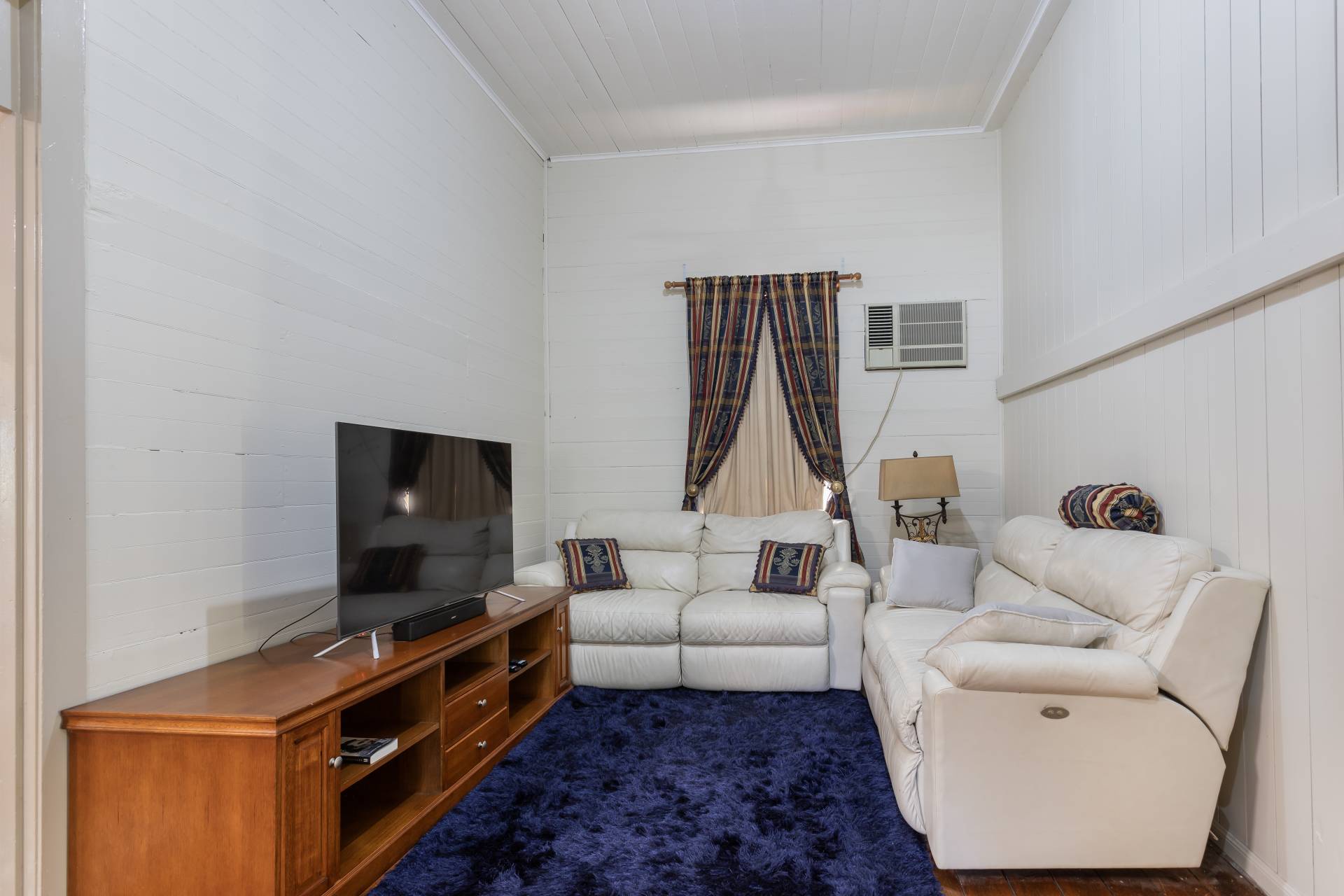 This three bedroom, 1 bathroom home features beautiful tongue and groove horizontal boards throughout.  With a high pitch roof and quaint front veranda, you could sit here for hours sipping iced tea.