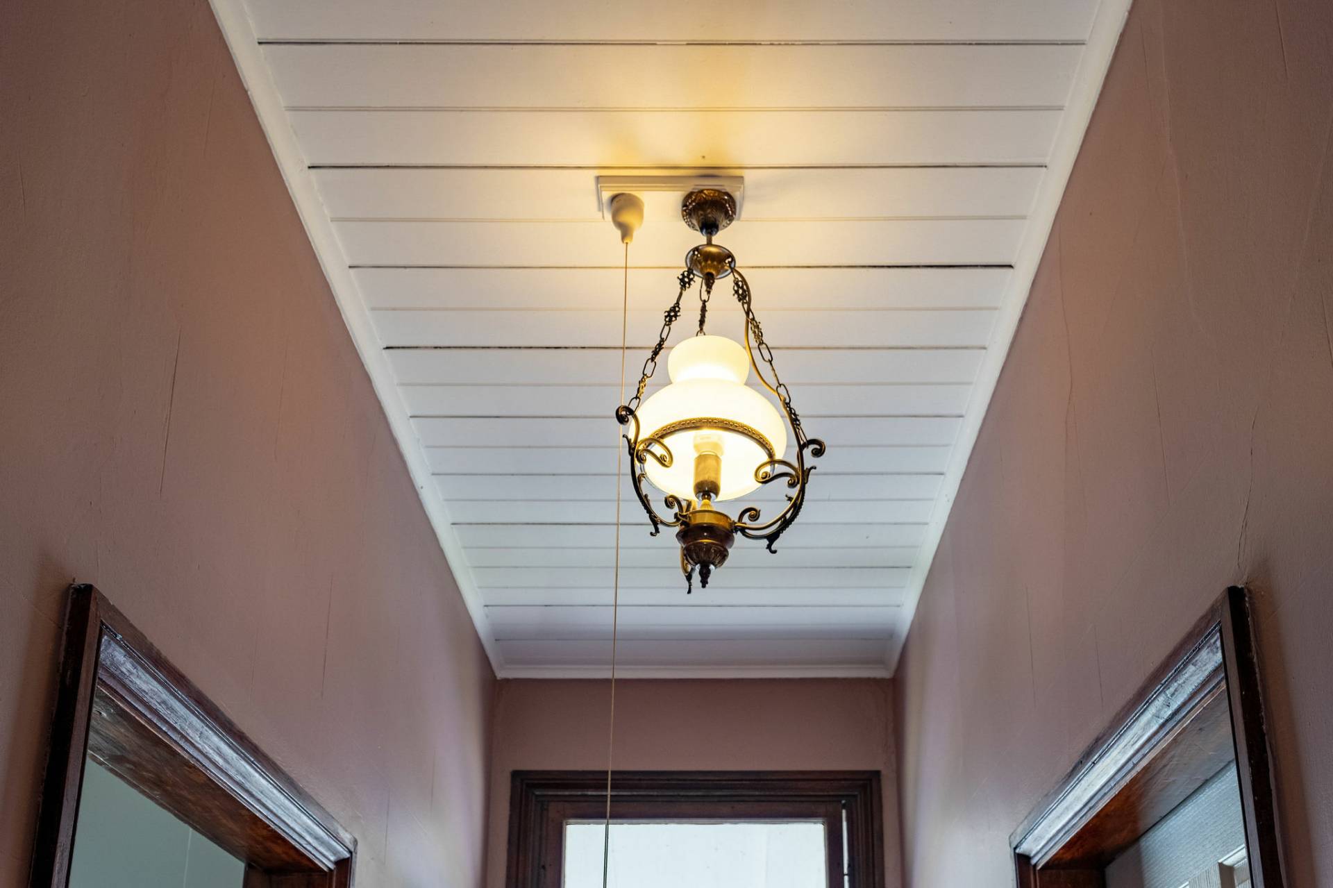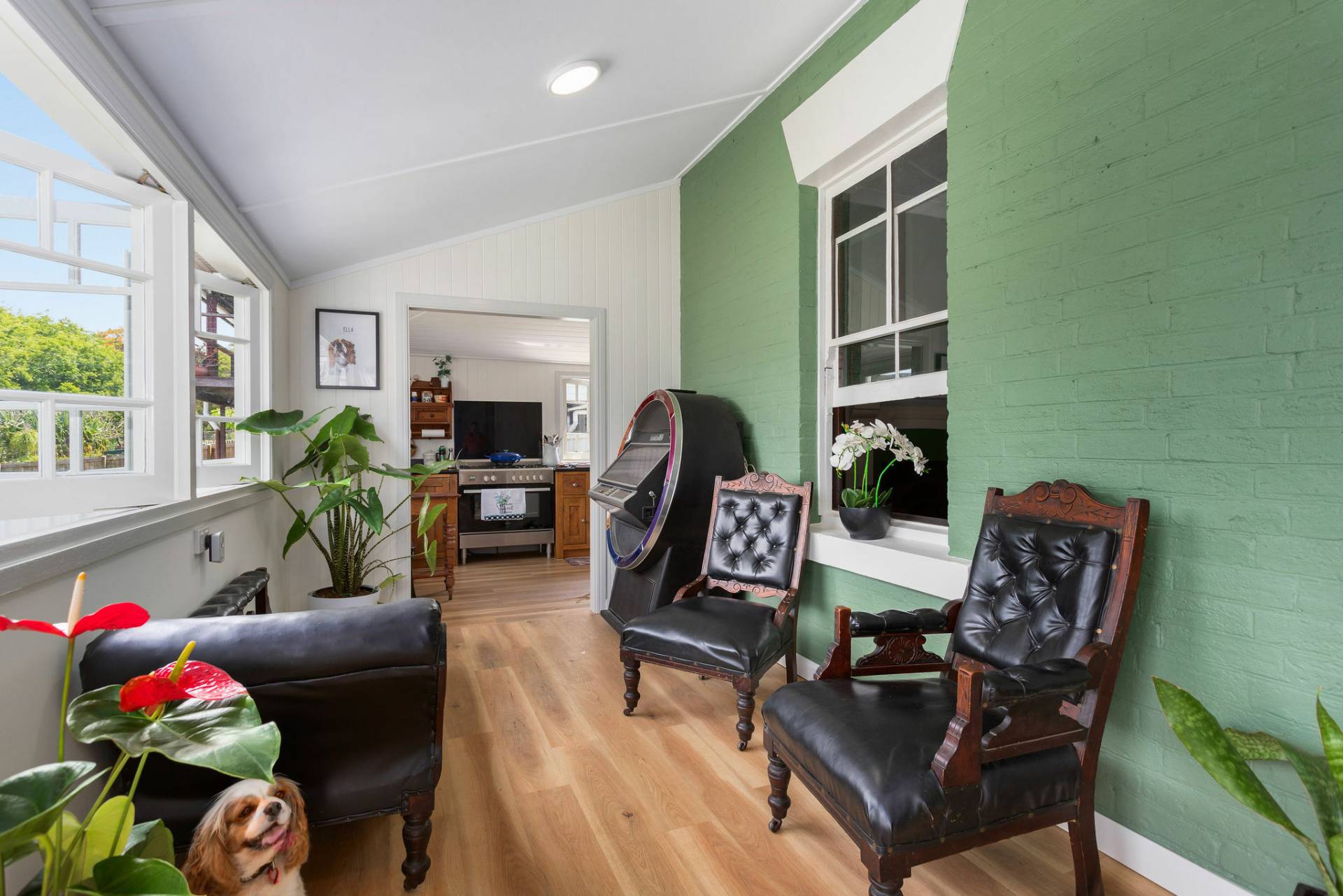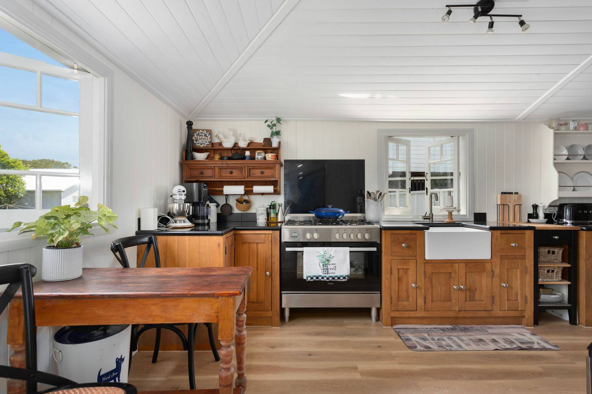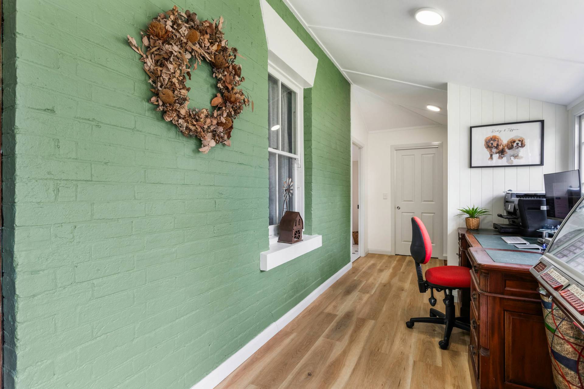 Wraparound living space is provided in the deep enclosed verandahs where you can enjoy the sunroom with a view to the CBD. A home office is also in this space and is tucked behind a privacy wall.  Separate W.C. has storage space, and a divine period bathroom features a stunning clawfoot bath, double his and hers shell pedestal basins, art deco mirrors and armoire for linen.