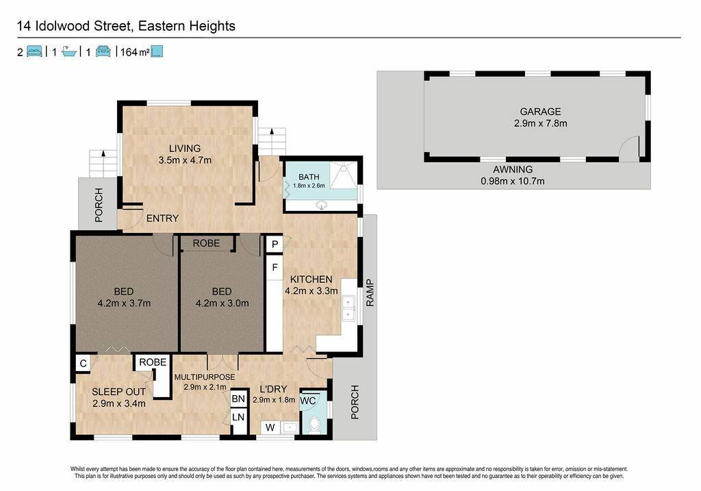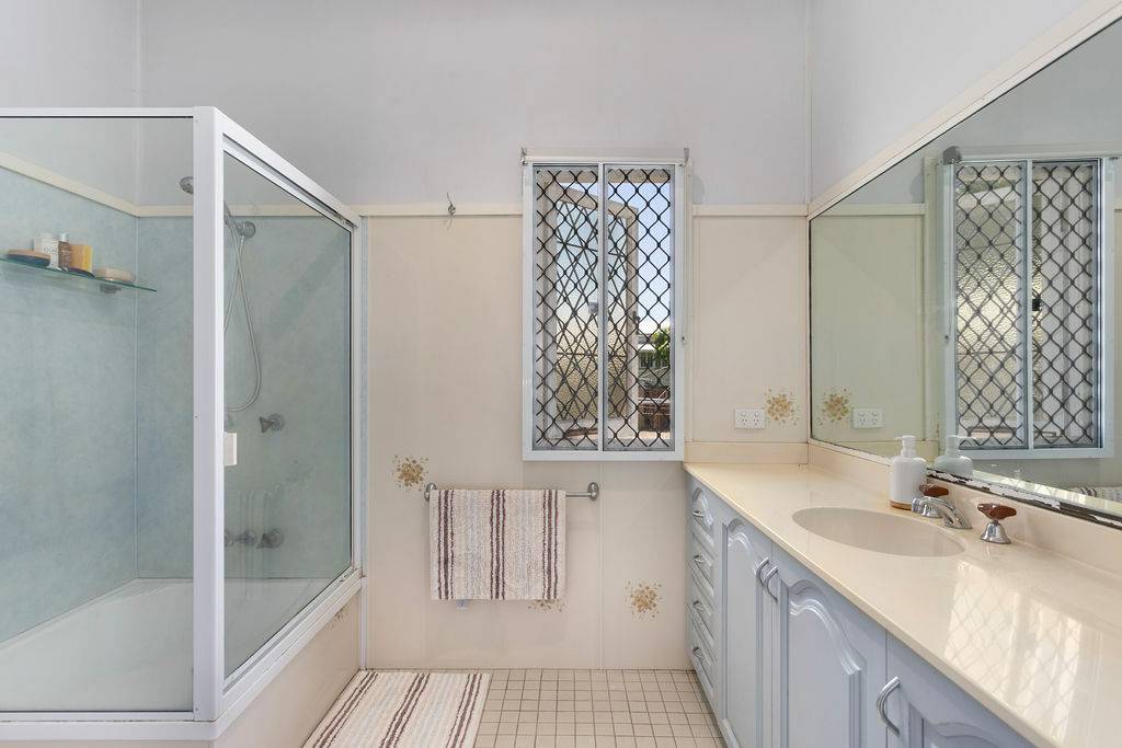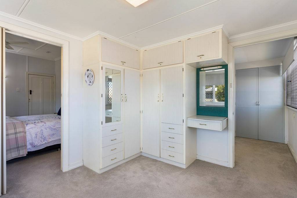 A secure front porch opens to the separate living area. To the right is the very generous main bedroom. A sleepout off this bedroom is filled with built in storage and vanity. A multi-purpose room has more storage. This area could be reconfigured to a walk-in-robe r ensuite.