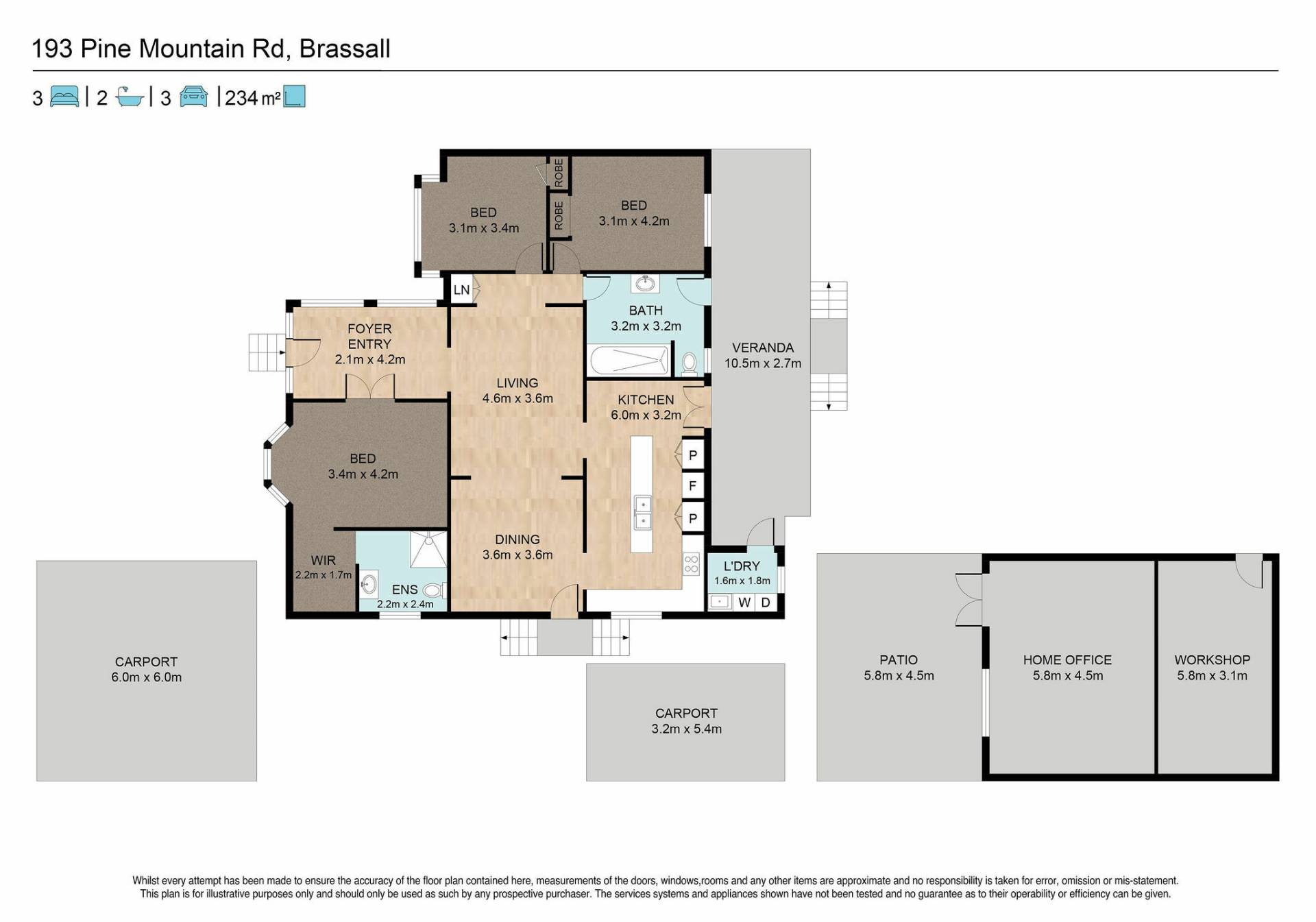 Double car accommodation is provided at the front and has drive-through access to a separate car port.