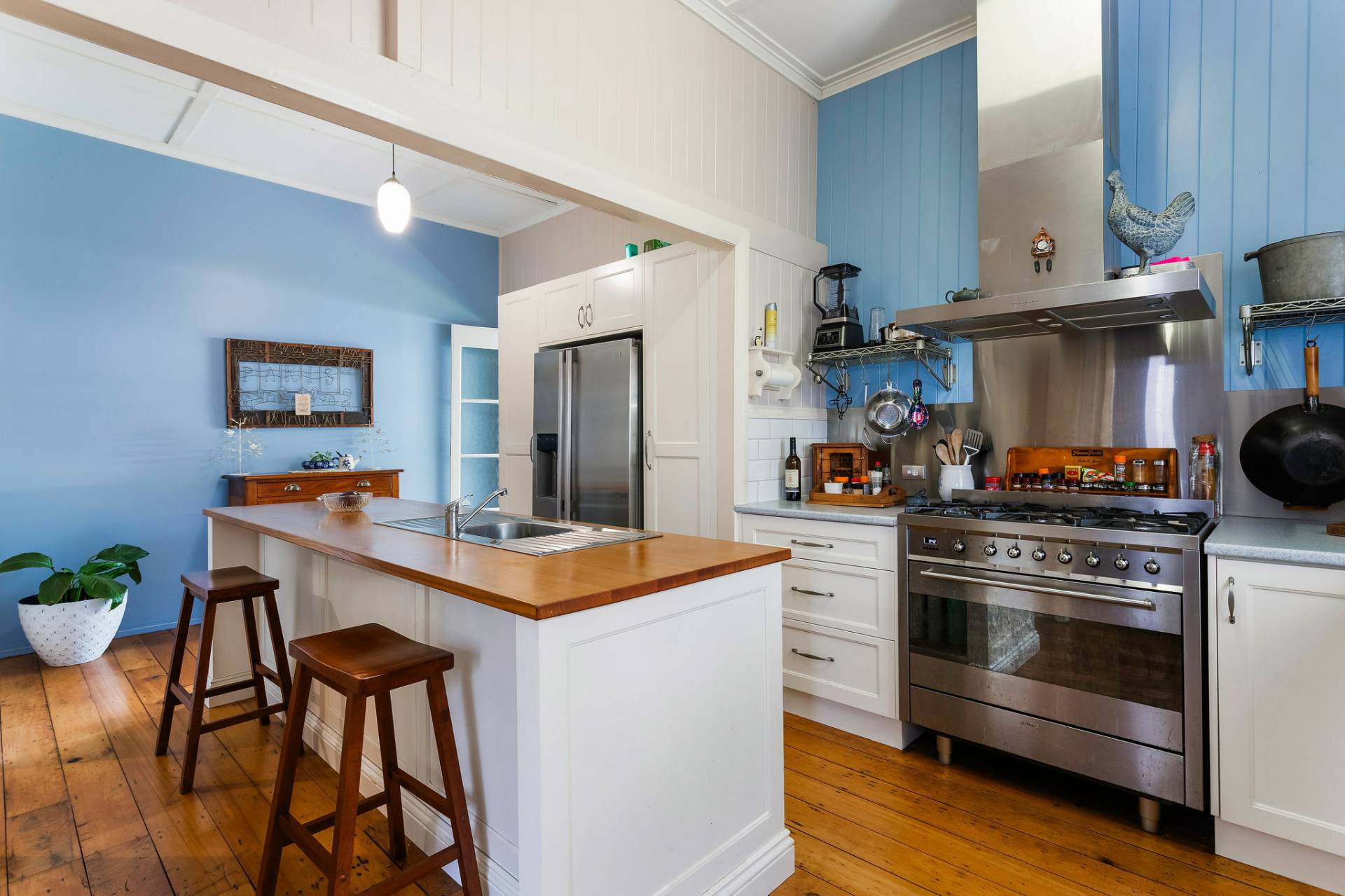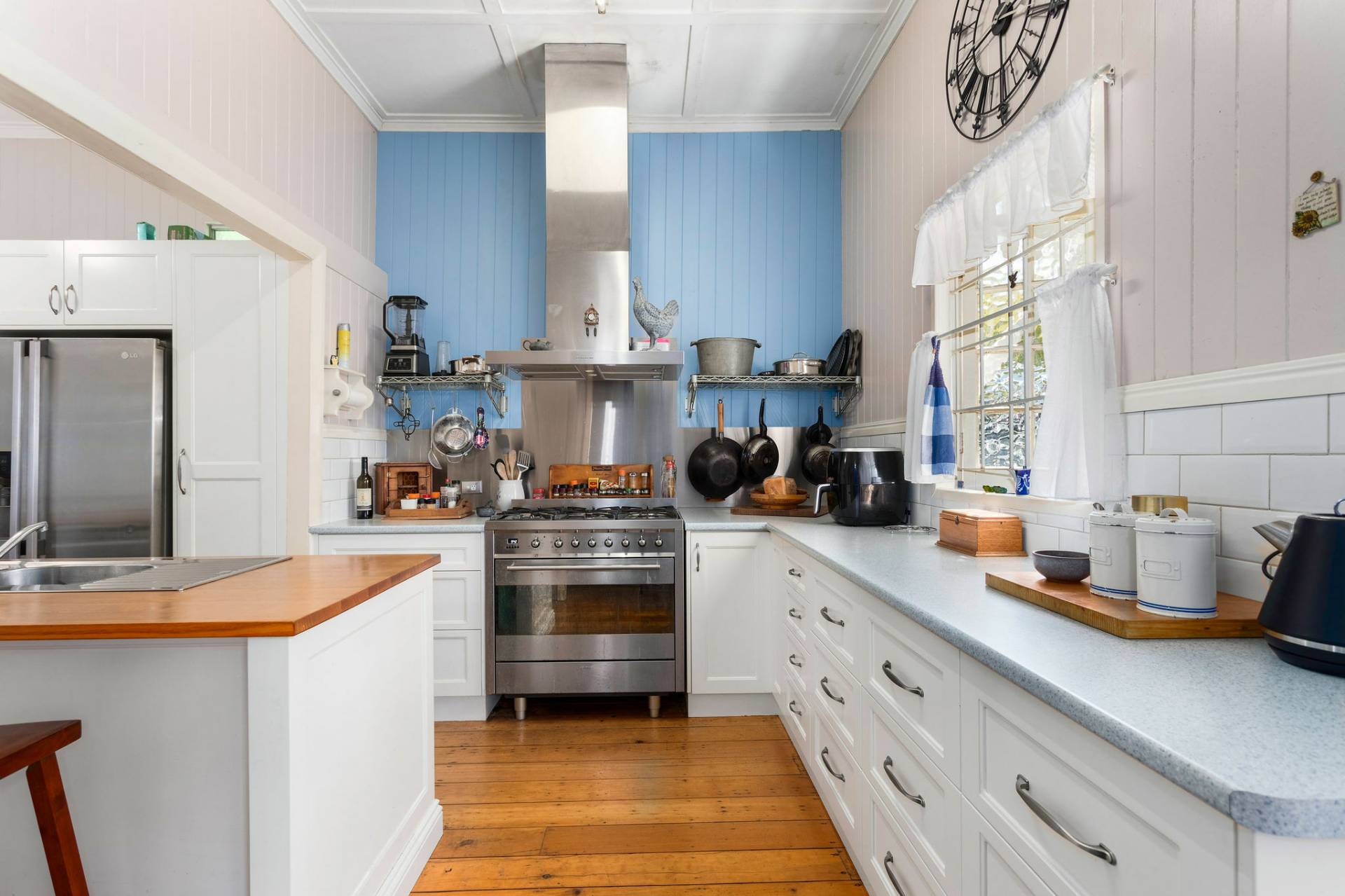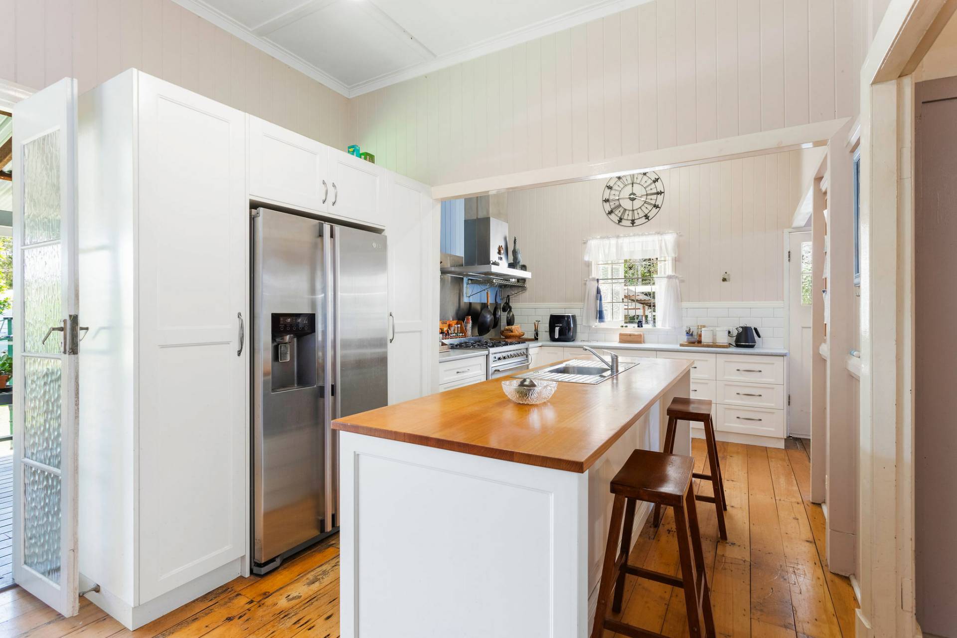 The wide entry leads to a huge open plan living with lounge, dining and access to the hub of the home, a well-appointed kitchen with maximum storage and island bench with timber top for casual meals.  The plumbed double door fridge is included.